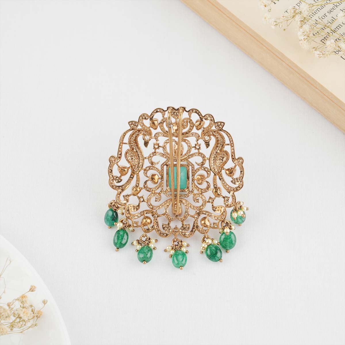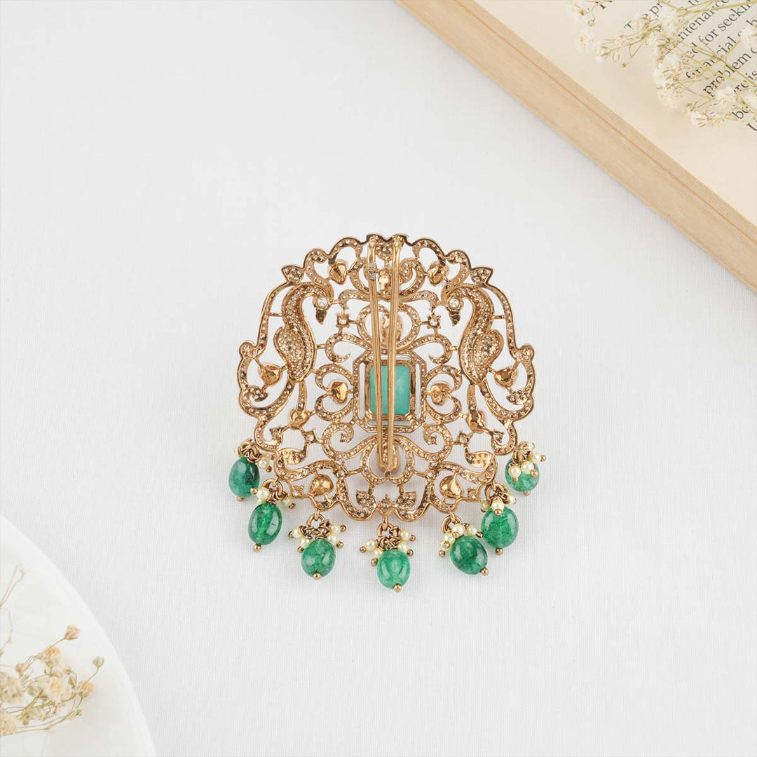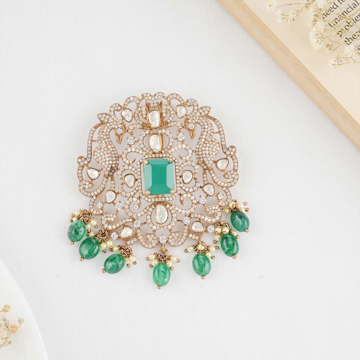 92.5 Silver, Victorian Jada Billa studded with Gem Stones and Pearl Beads.