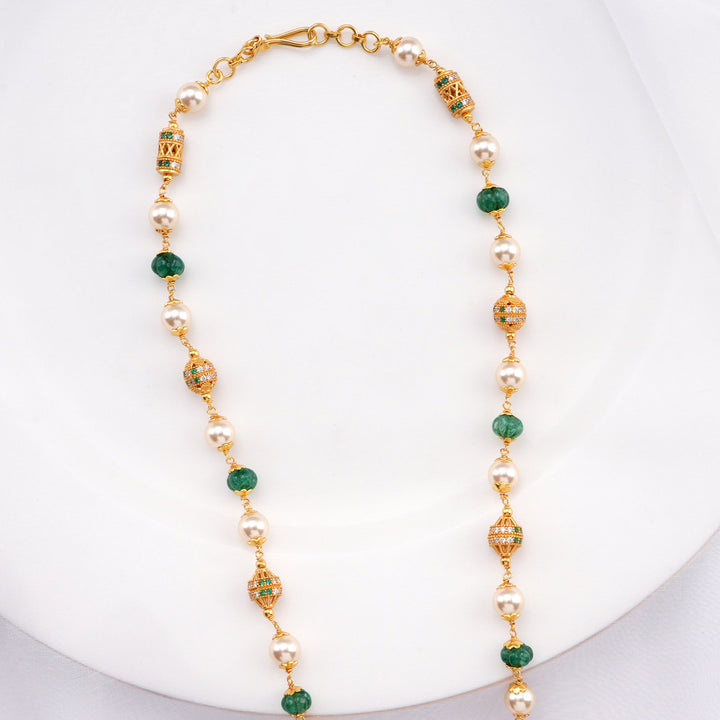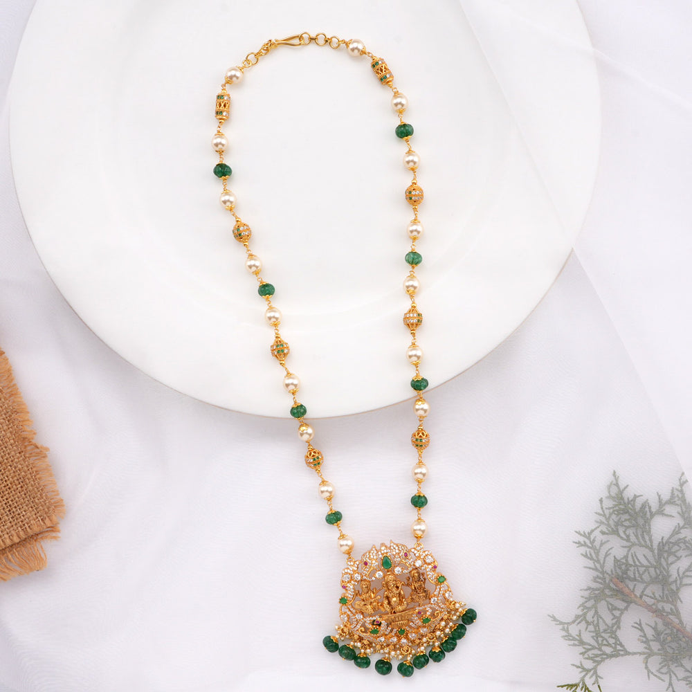 Crafted with 92.5% silver and 24 kt gold plating, this necklace features a dazzling array of semi-precious stones and beads, making it a truly stunning piece.