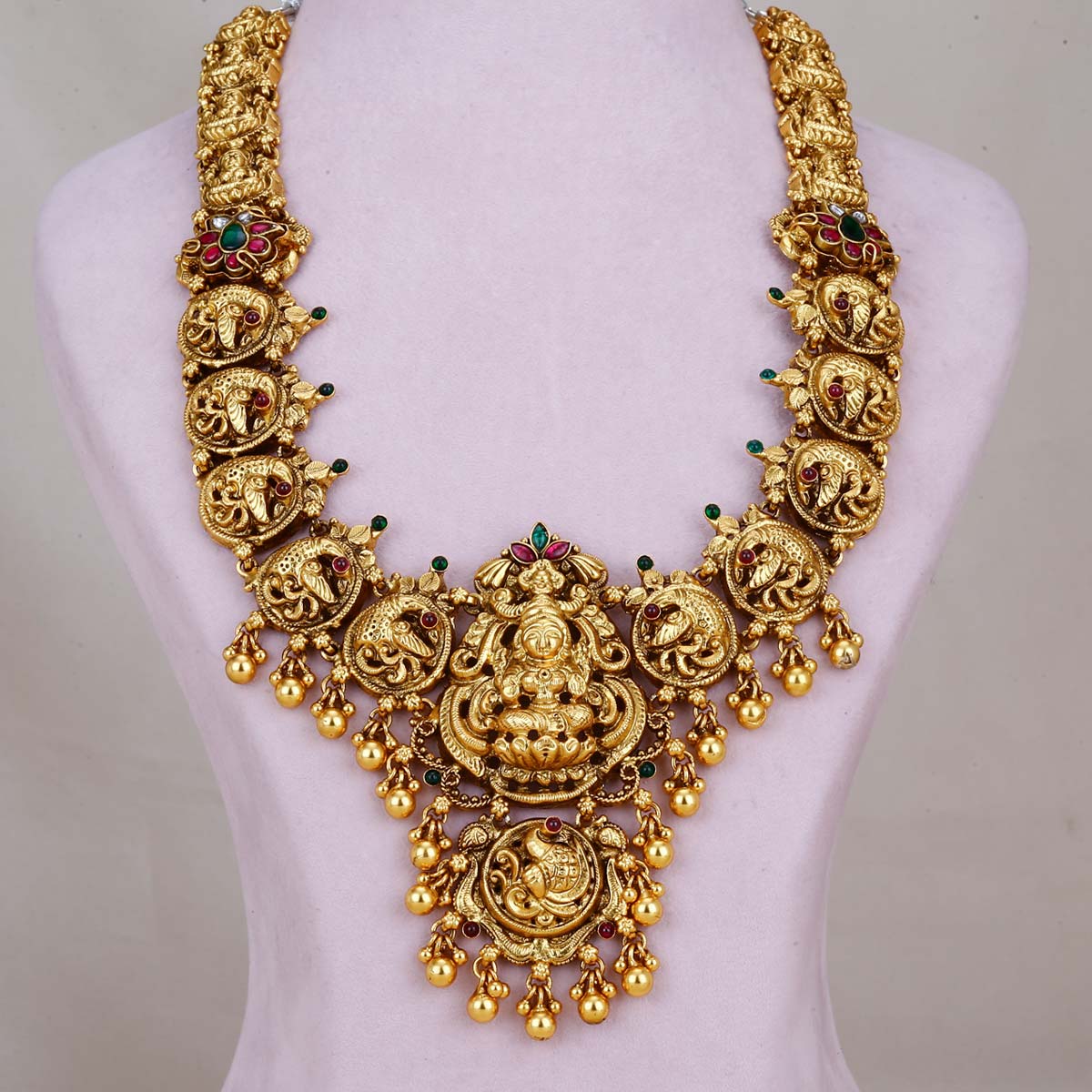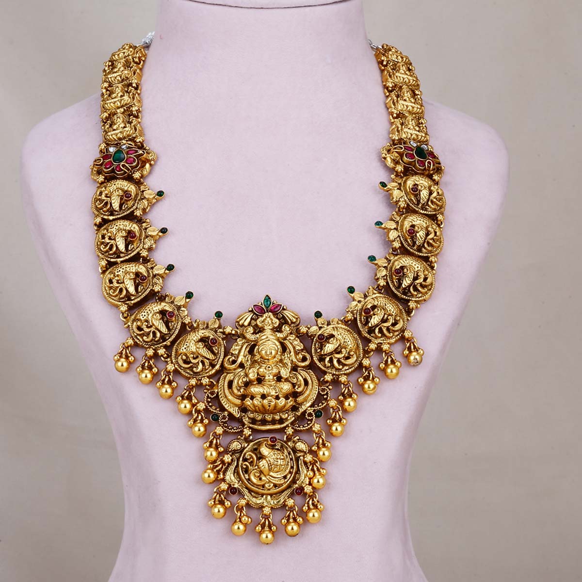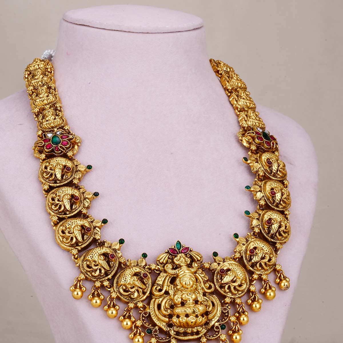 92.5 Silver, 22kt Gold Plated Necklace Studded with semi-precious stones.