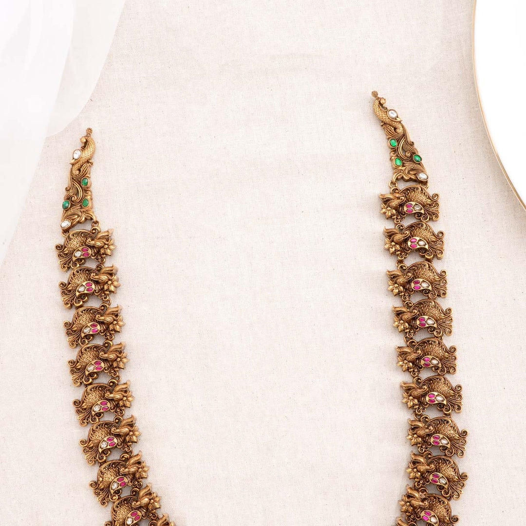 This stunning Majestic Look Nagas necklace set is made of 92.5 Silver and 24kt Gold Plated, adorned with semi-precious stones for a dazzling impact. With unmatched design and style, this set will make a magnificent statement.