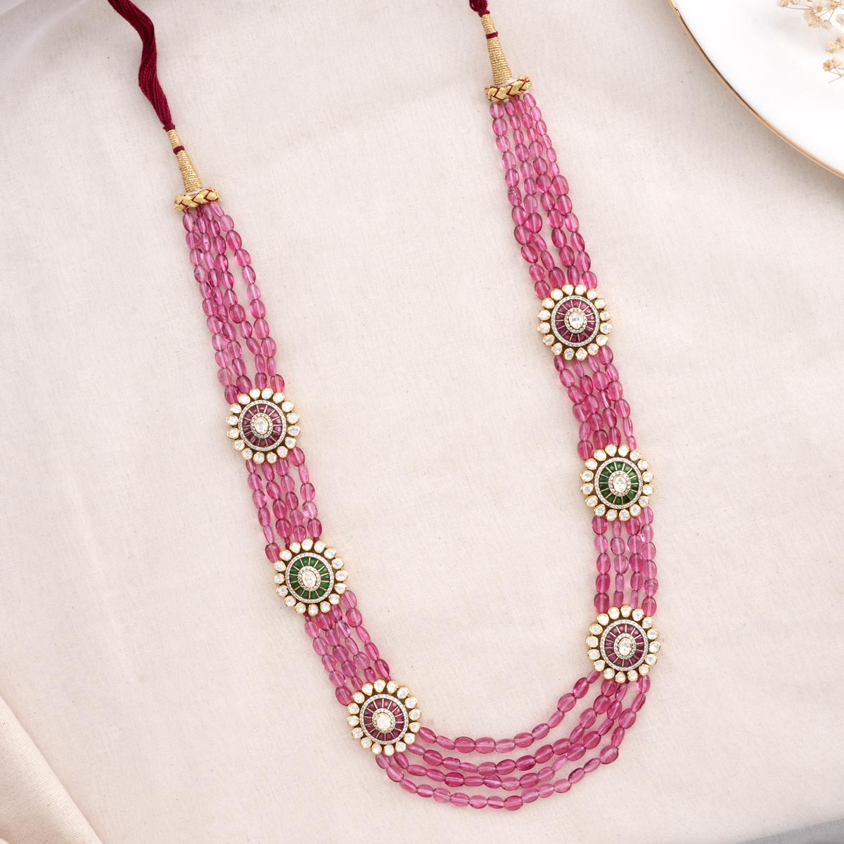 92.5 Silver, Victorian Necklace studded with Gem Stones and Beads.