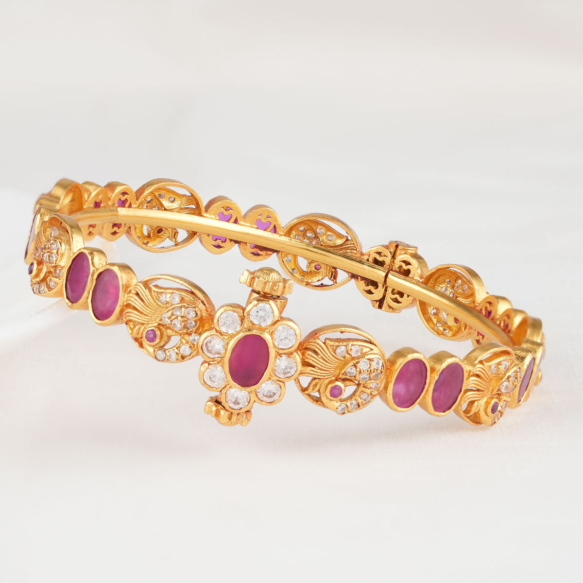 This 92.5 Silver, 24 kt gold-plated stylish Bangles is studded with semi-precious stones to make a stunning statement. Perfect for both formal and casual occasions.