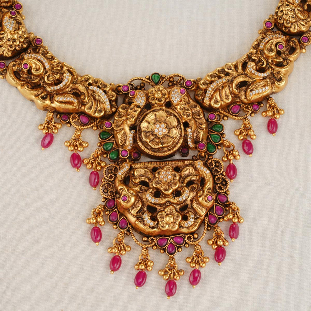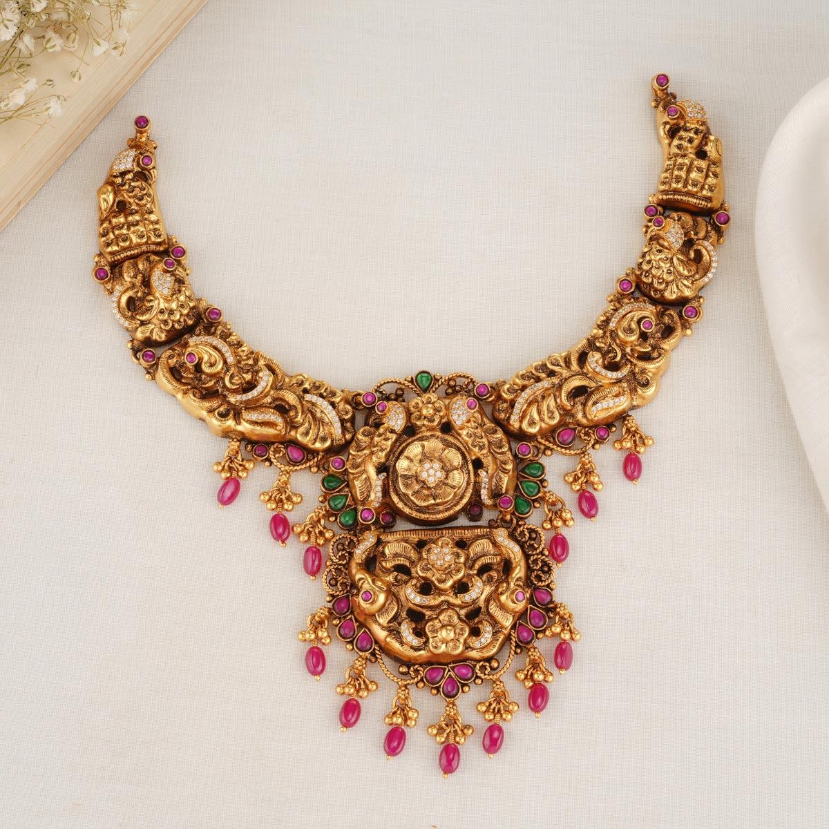 Elevate your style with this Majestic Look Nagas necklace set. Crafted from 92.5 Silver and 24kt Gold Plated, this set boasts exquisite semi-precious stones for a dazzling effect.