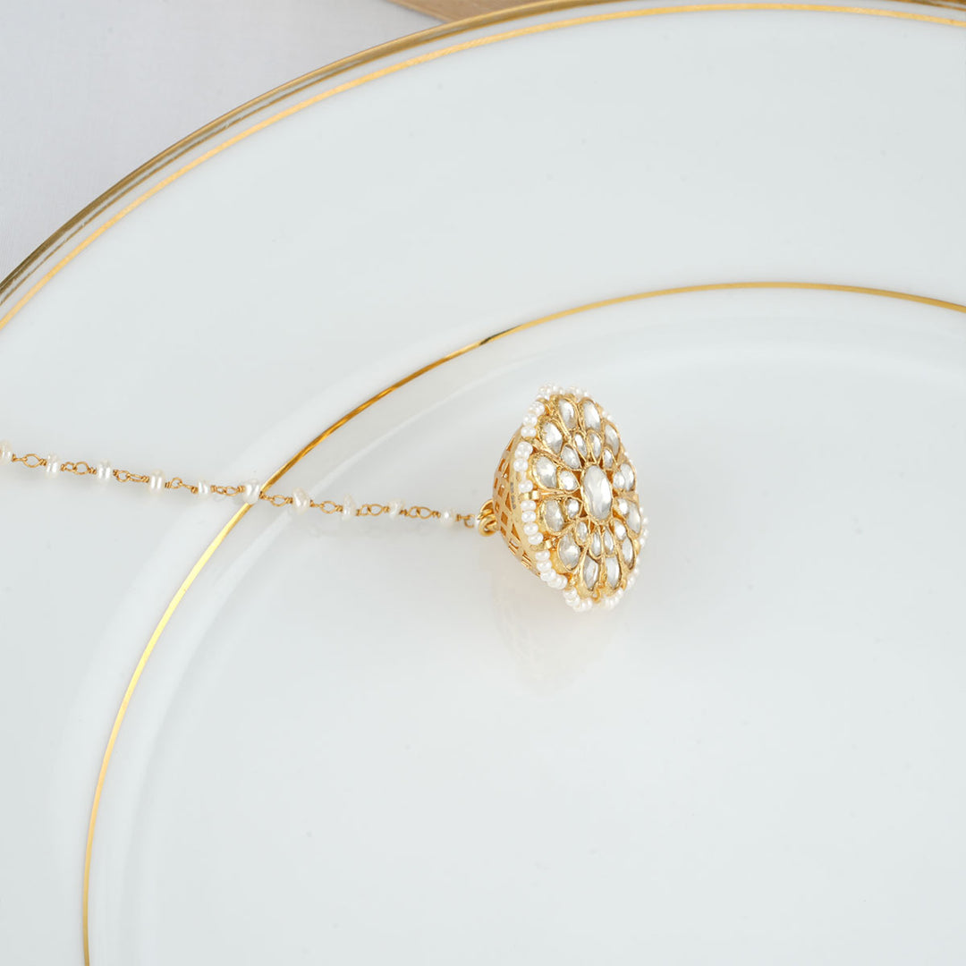 This 92.5 Silver Gold Plated Maangtikka is ideal for a traditional and contemporary look. Featuring detailed designs, this ornament will add a touch of sophistication and shine to any outfit. Crafted with nickel-free and rust-resistant material, it is perfect for everyday wear.
