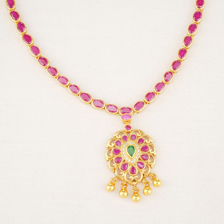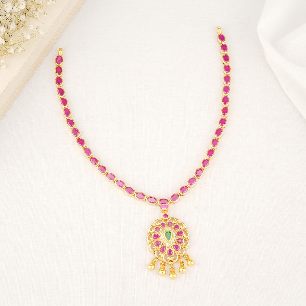 This 92.5 Silver, 24 kt gold-plated stylish Necklace is studded with semi-precious stones to make a stunning statement. Perfect for any special occasion.