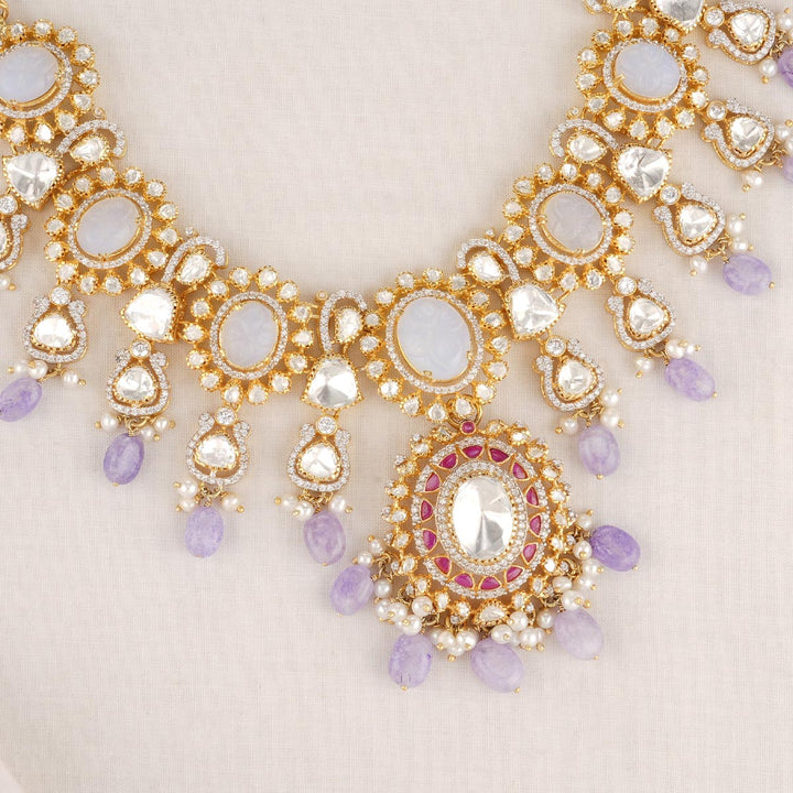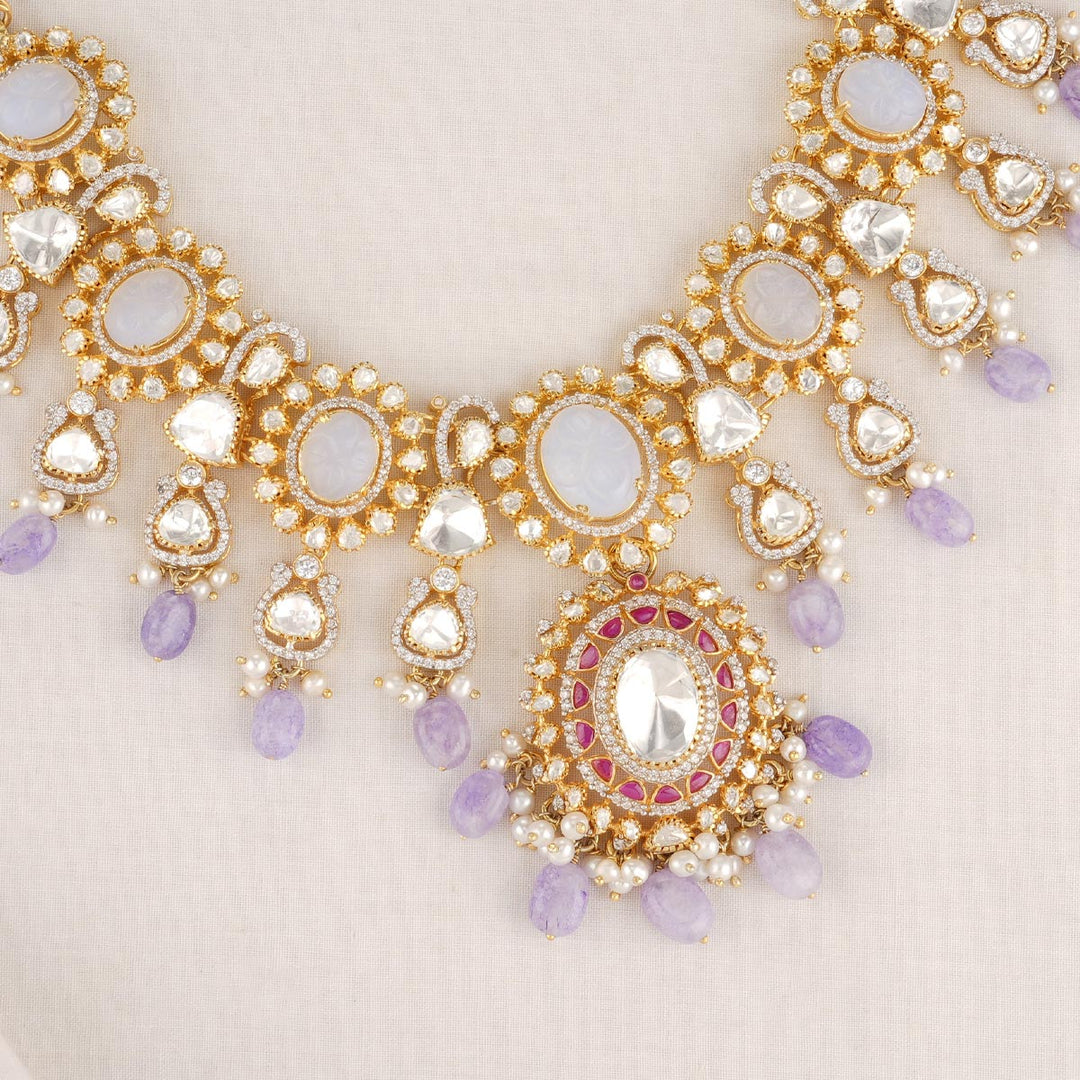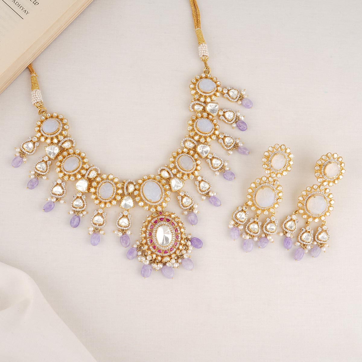 The Kaesira Short Necklace Set features a combination of 92.5 Silver and 24kt Gold Plated materials, accented with sparkling semi-precious stones. Expertly designed, this set is sure to make a stunning statement of elegance and sophistication.