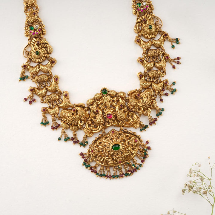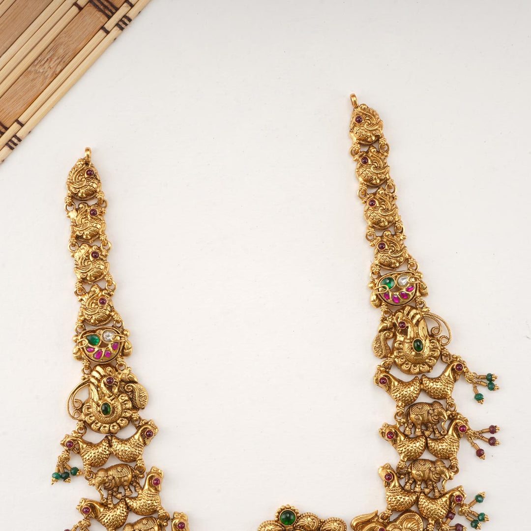 This necklace is made from 92.5 Sterling Silver, accented with semiprecious stones and adorned with a 24-karat gold plating, all on Nagas Jewellery.