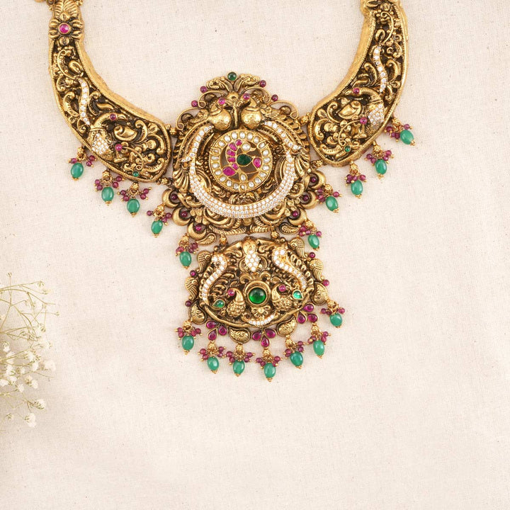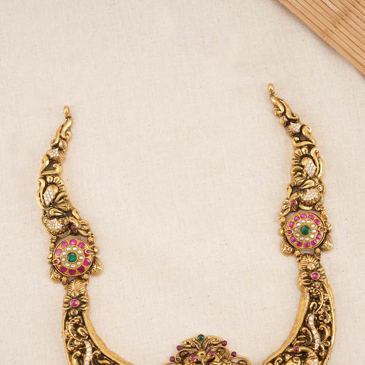 This necklace is made from 92.5 Sterling Silver, accented with semiprecious stones and adorned with a 24-karat gold plating, all on Nagas Jewellery.