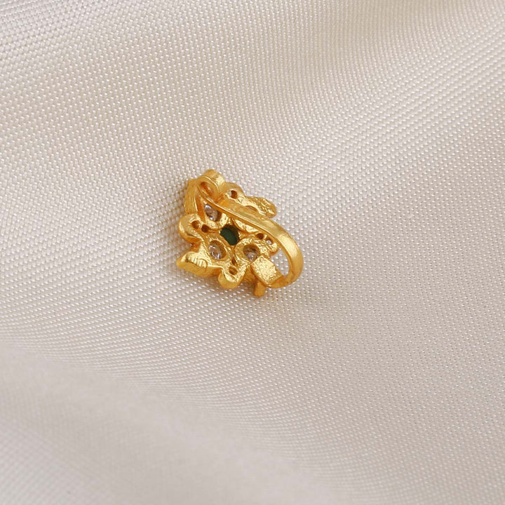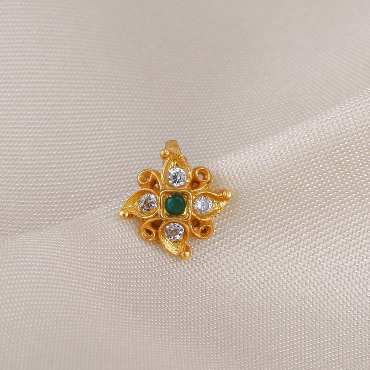 This 92.5 Silver Nose Pin is 24kt Gold Plated and is designed with Semi-Precious Stones, allowing you to enjoy a stylish look without the need for piercing.