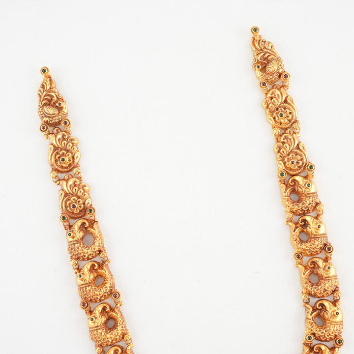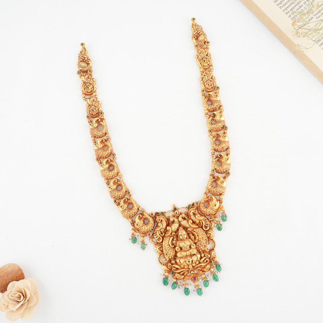 This necklace is made from 92.5 Sterling Silver, accented with semiprecious stones and adorned with a 24-karat gold plating, all on Nagas Jewellery.