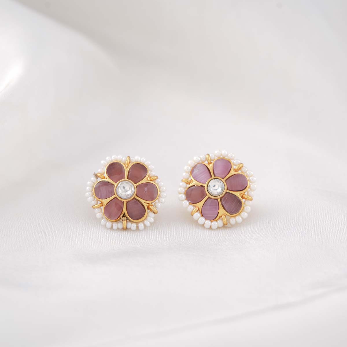 92.5 Silver Gold Plated Earrings studded with Kundan and mother of pearls.