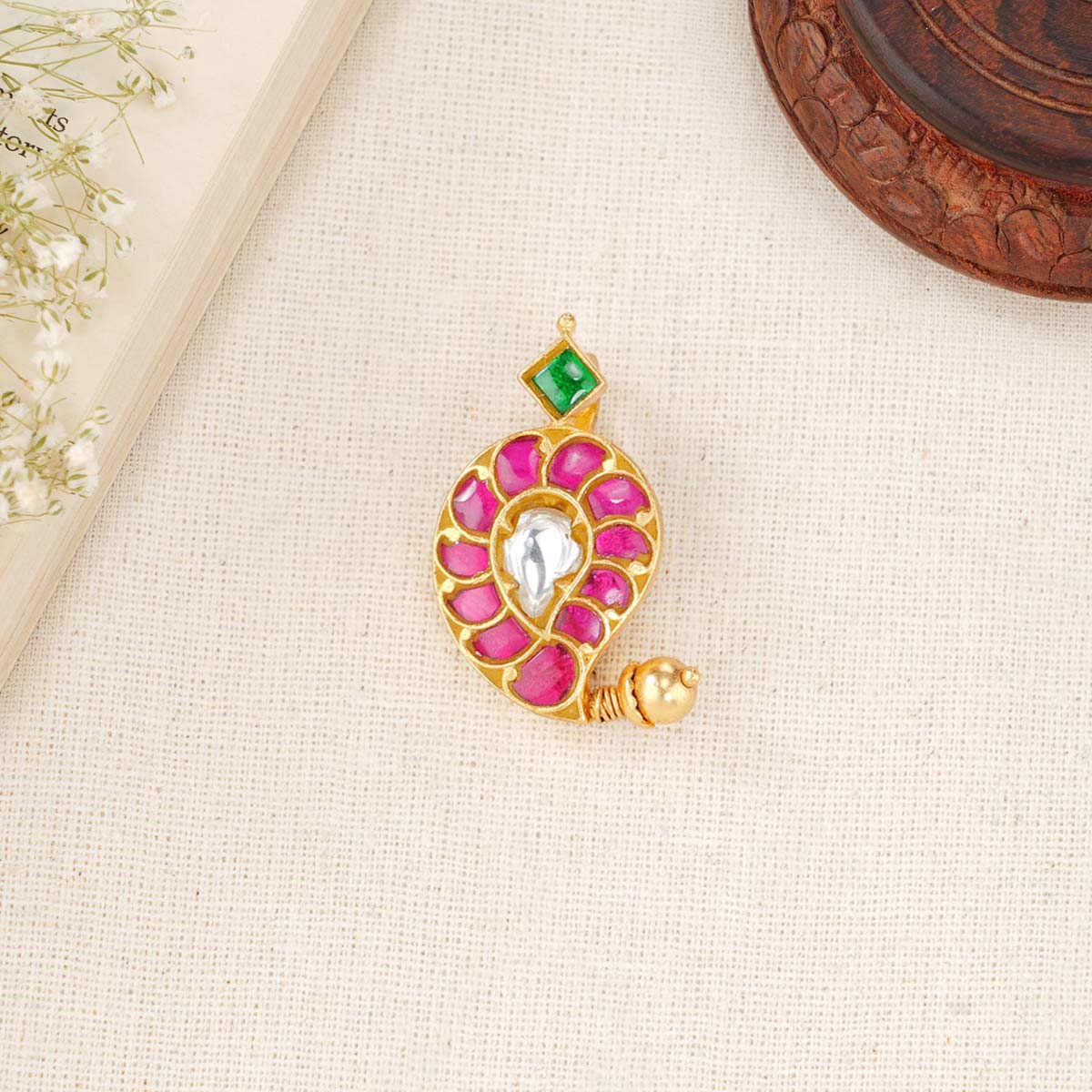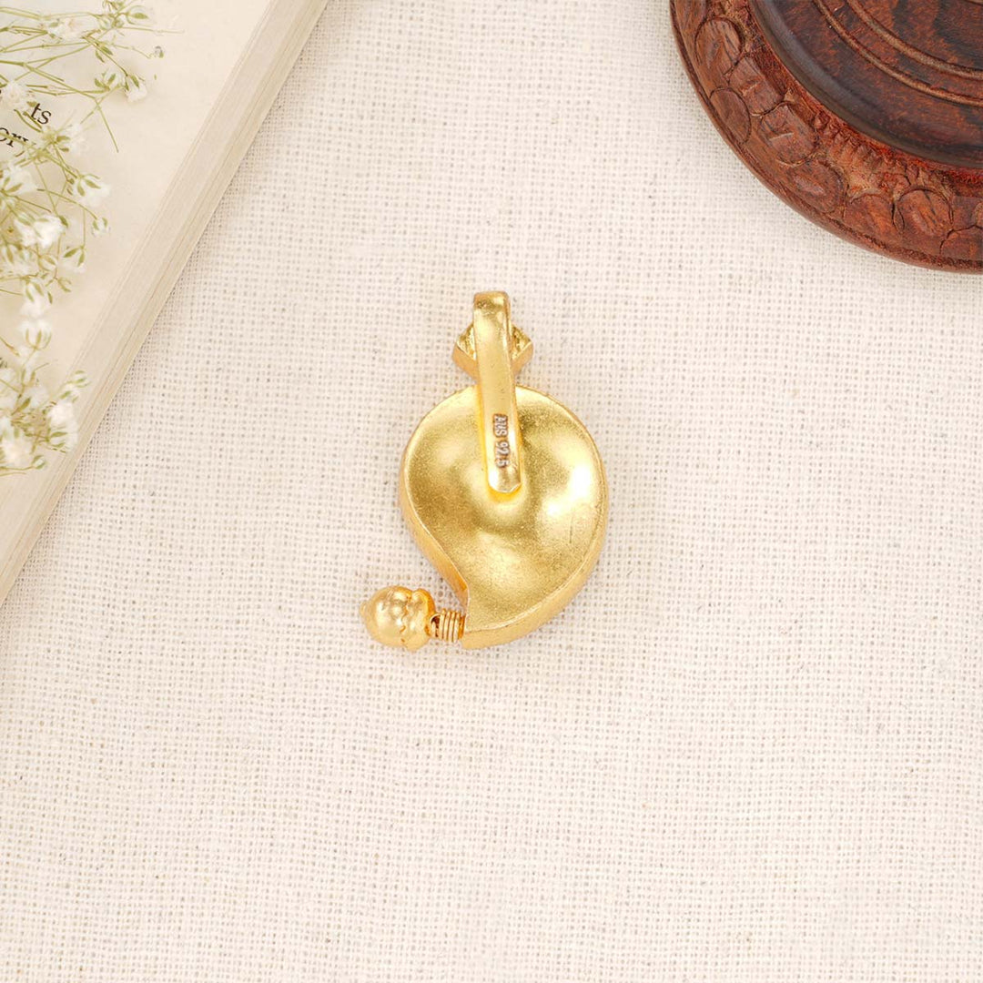 This 92.5 Silver, 24 kt Gold-Plated Pendant is adorned with Semi-precious Kundan Stones for a luxurious aesthetic.
