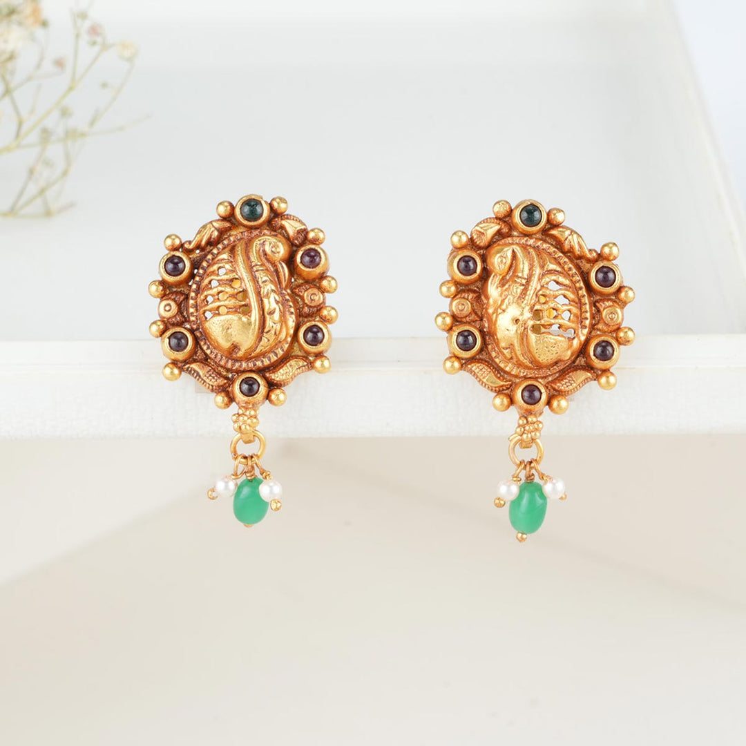 Fabricated from 92.5% sterling silver and 24-karat gold plating, these earrings are adorned with semi-precious stones.