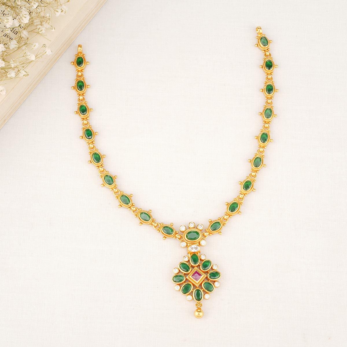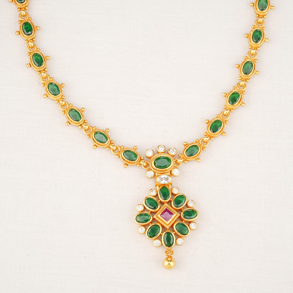 This set of Majestic Look necklaces is crafted from 92.5 Silver, 24kt Gold Plated, and is studded with semi-precious stones for a truly dazzling effect. Unparalleled in design and style, this exquisite set makes a grand statement.