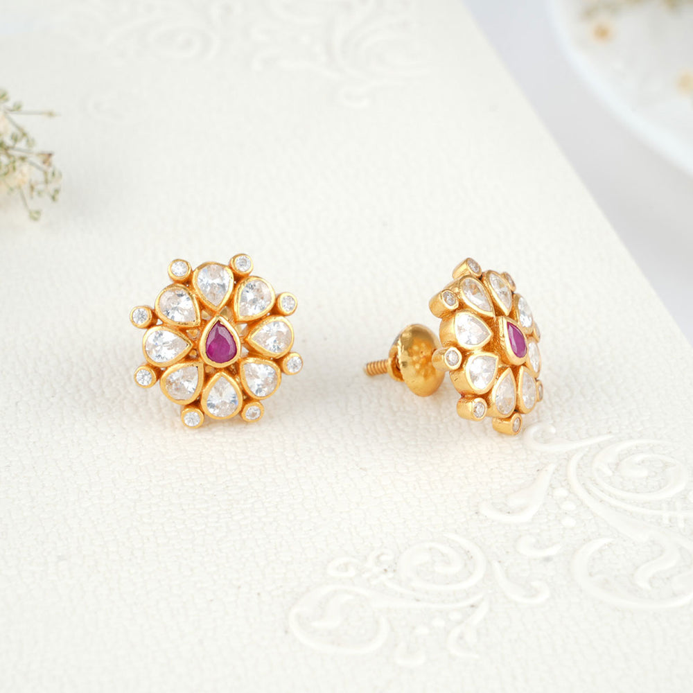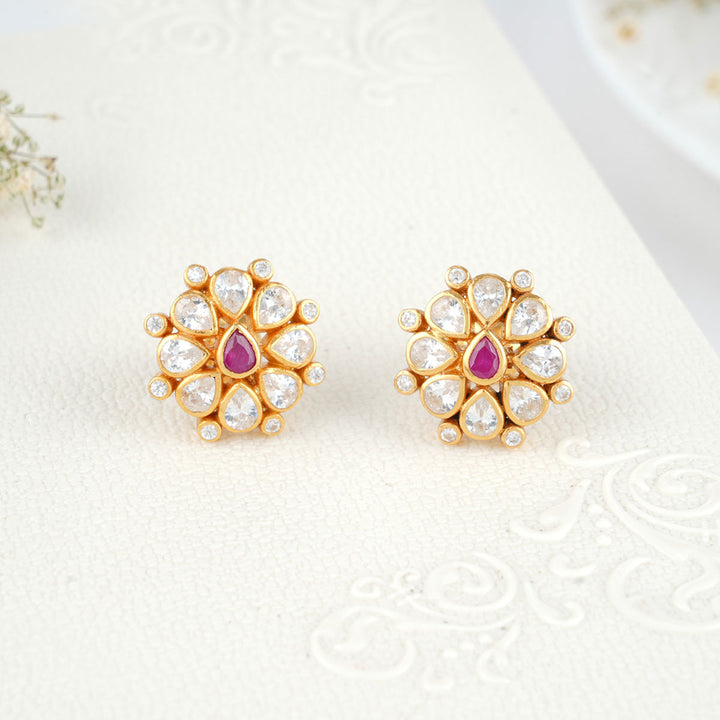 Crafted with 92.5% pure sterling silver and enhanced by 24-karat gold plating, these earrings are embellished with semi-precious stones.
