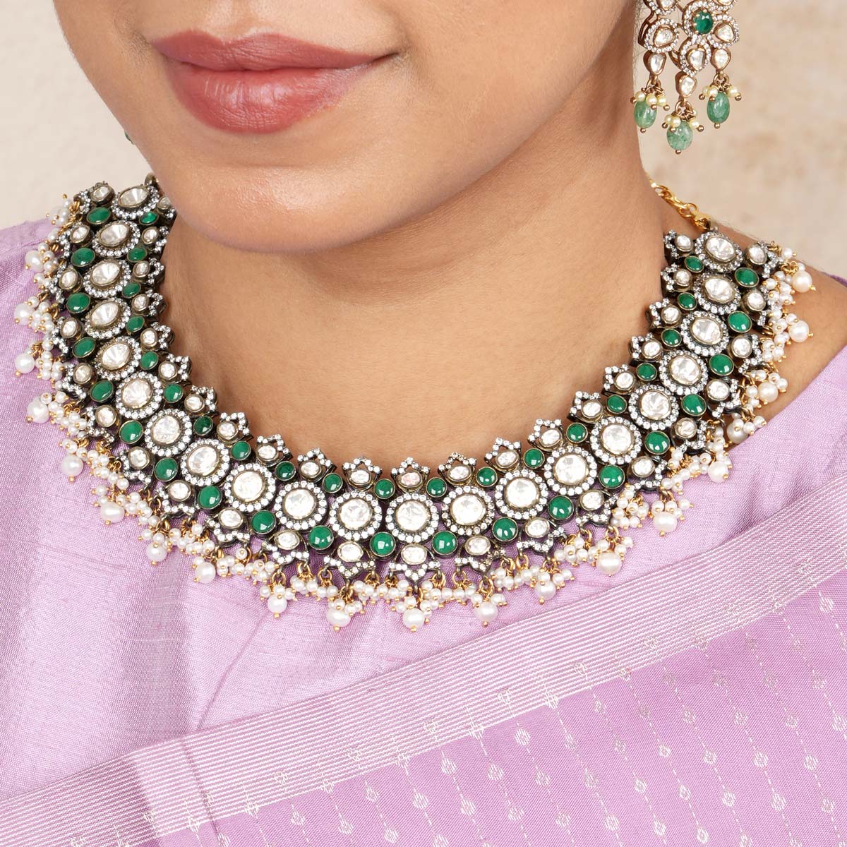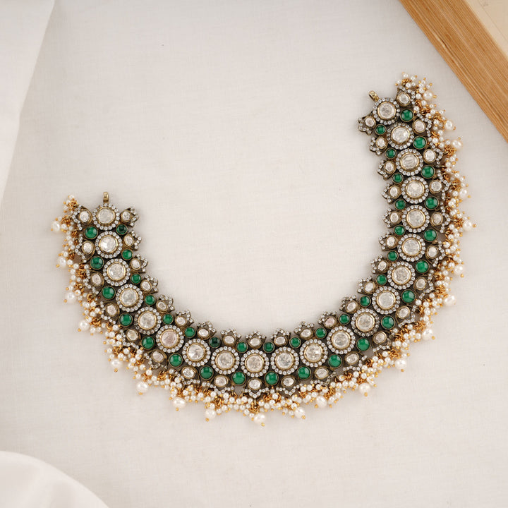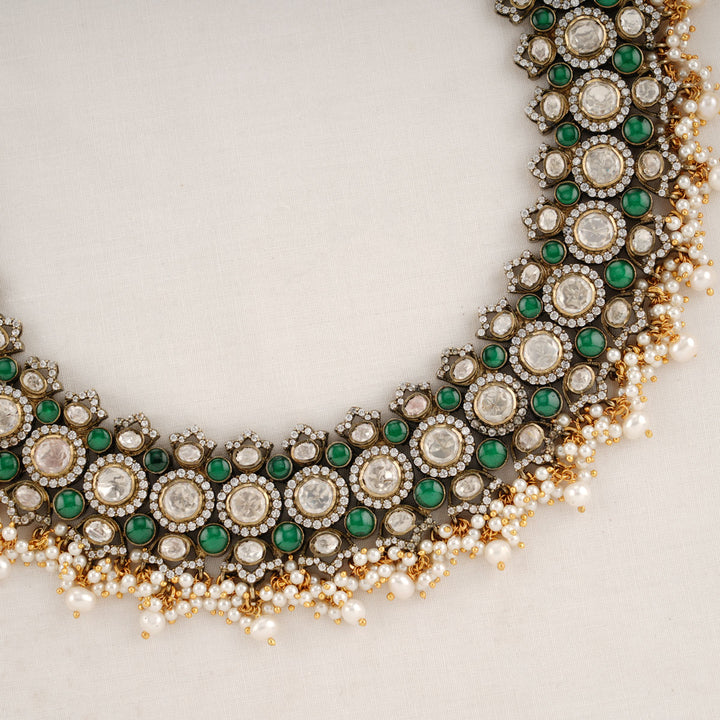 92.5 Silver, Victorian Necklace studded with Gem Stones and Pearl Beads.