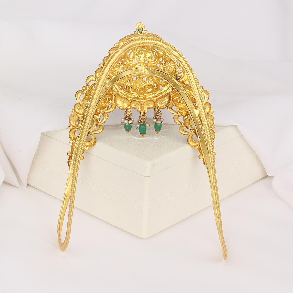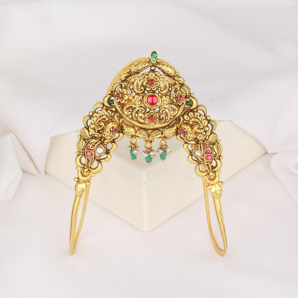 This Vanki is crafted with 92.5% silver, plated with 24-karat gold, and decorated with semi-precious stones.