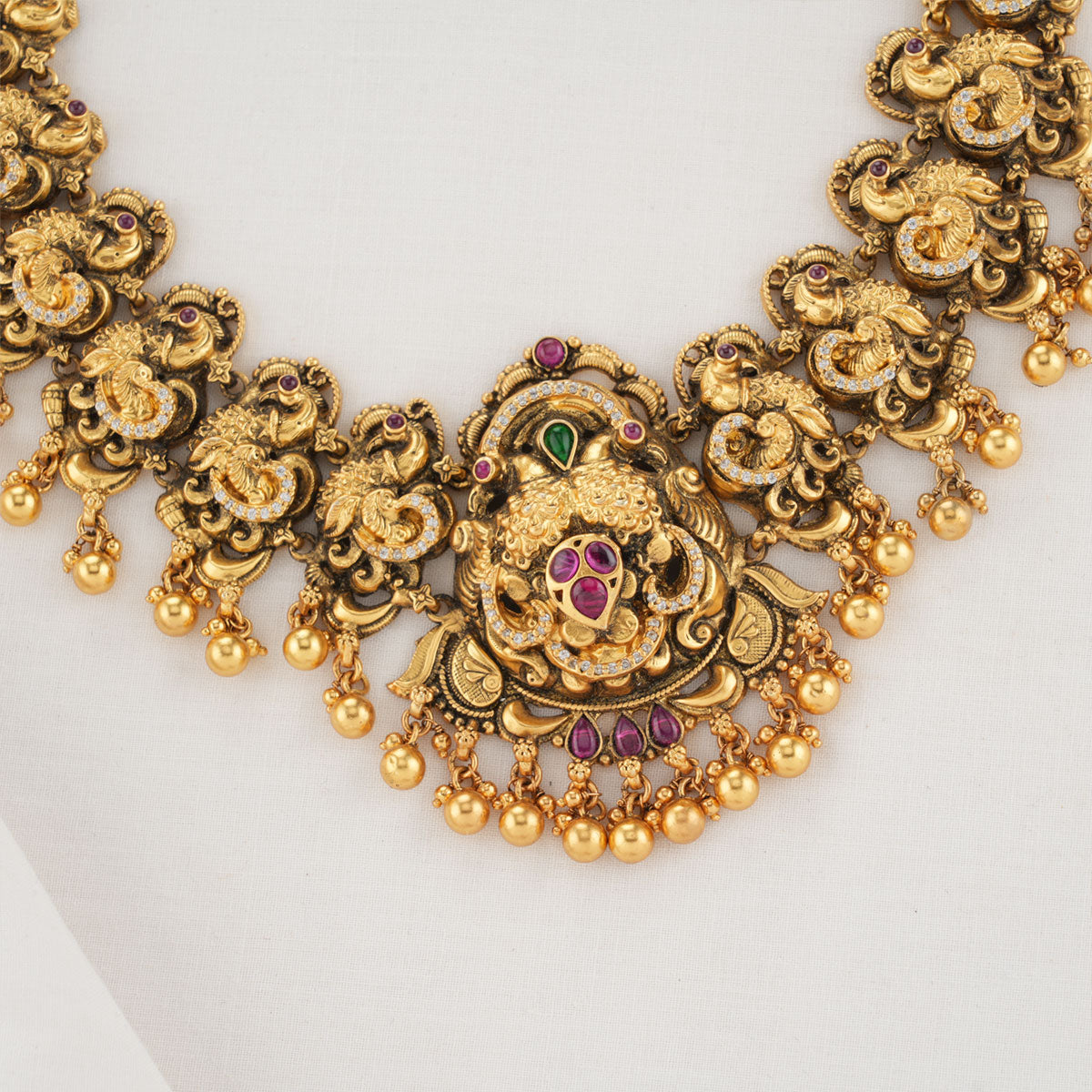 This necklace is crafted from 92.5 Sterling Silver with 24-karat gold plating and features semiprecious stones.