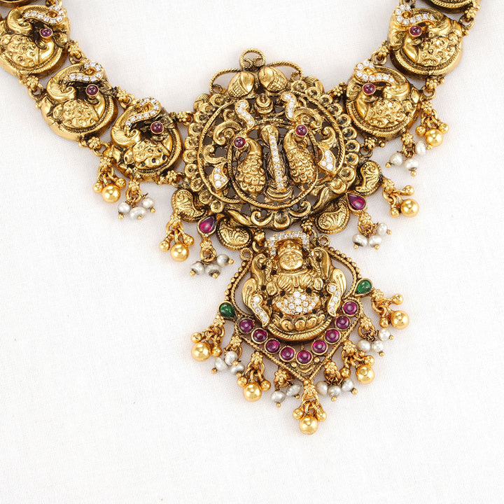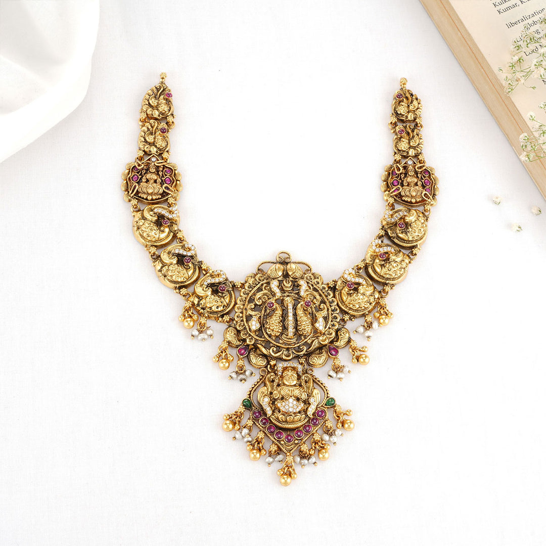 This necklace is made from 92.5 Sterling Silver and boasts 24-karat gold plating and semiprecious stones.