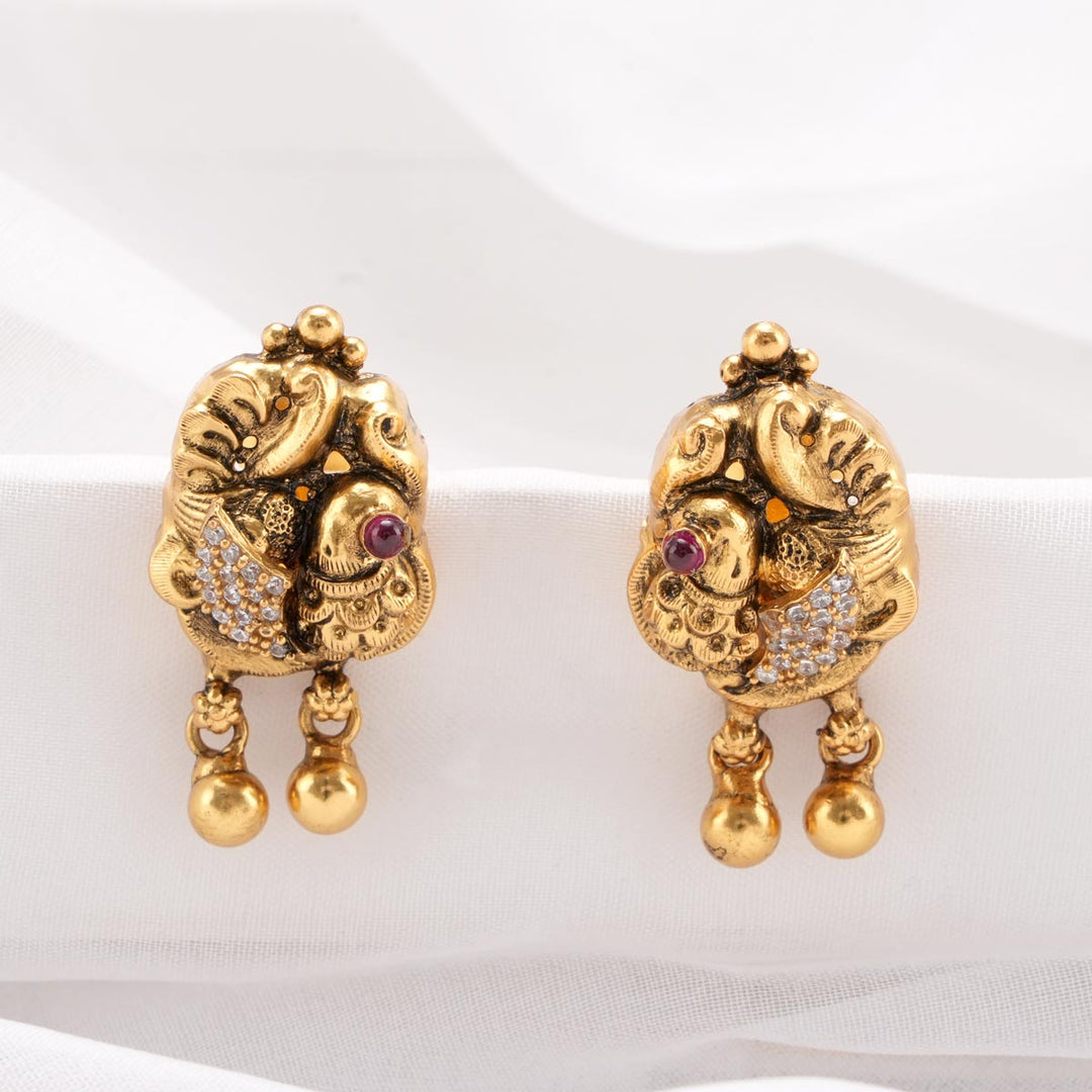 92.5 silver, 22kt gold plated Earrings studded with semi-precious stones.