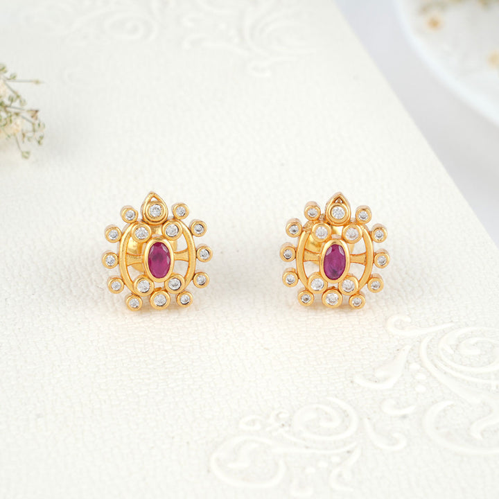 Crafted with 92.5% pure sterling silver and enhanced by 24-karat gold plating, these earrings are embellished with semi-precious stones.