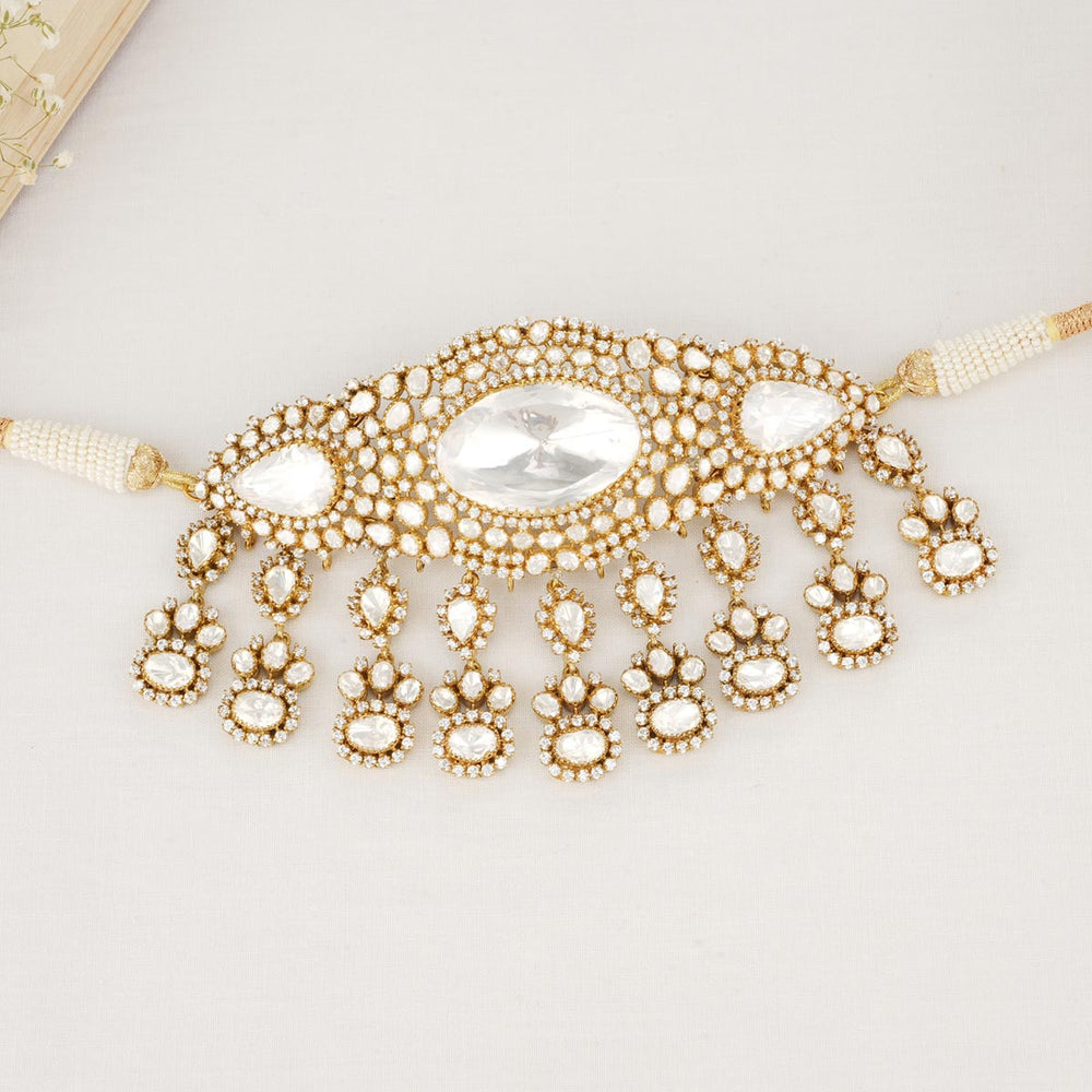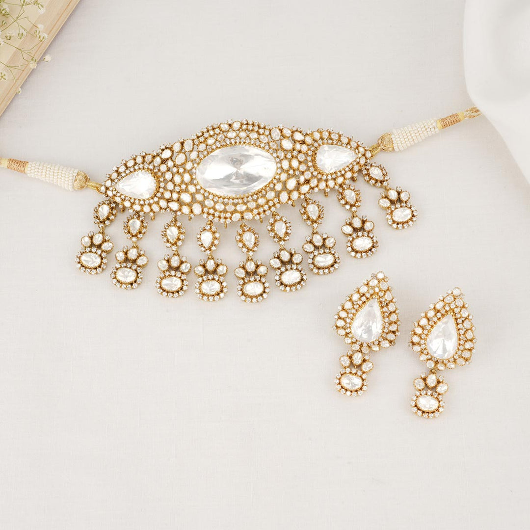 92.5 Silver, 24kt Gold Plated Choker Set Studded with Moissanite stones.
