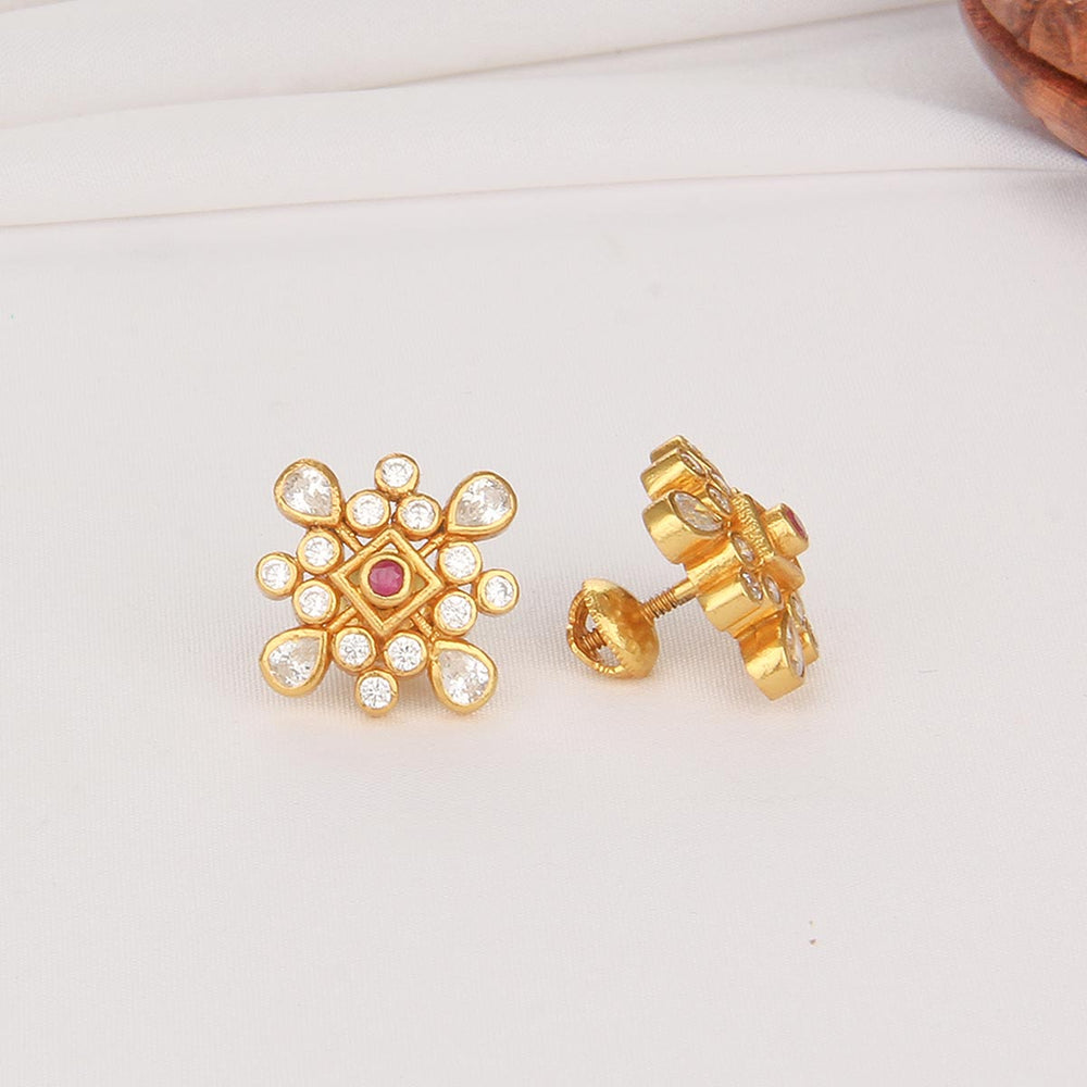 Fabricated from 92.5% sterling silver and 24-karat gold plating, these earrings are adorned with semi-precious stones.