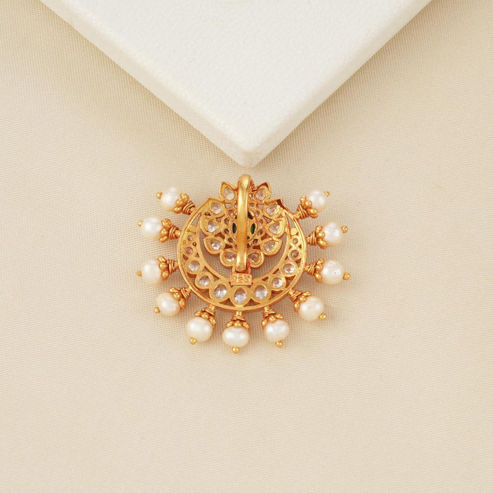 This 92.5 Silver, 24 kt gold-plated stylish Pendant is studded with semi-precious stones to make a stunning statement. Perfect for any special occasion.