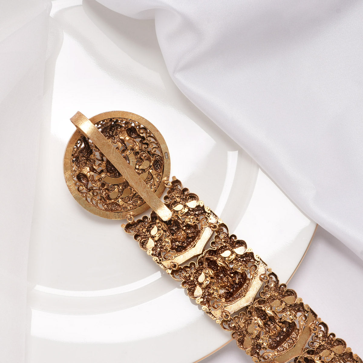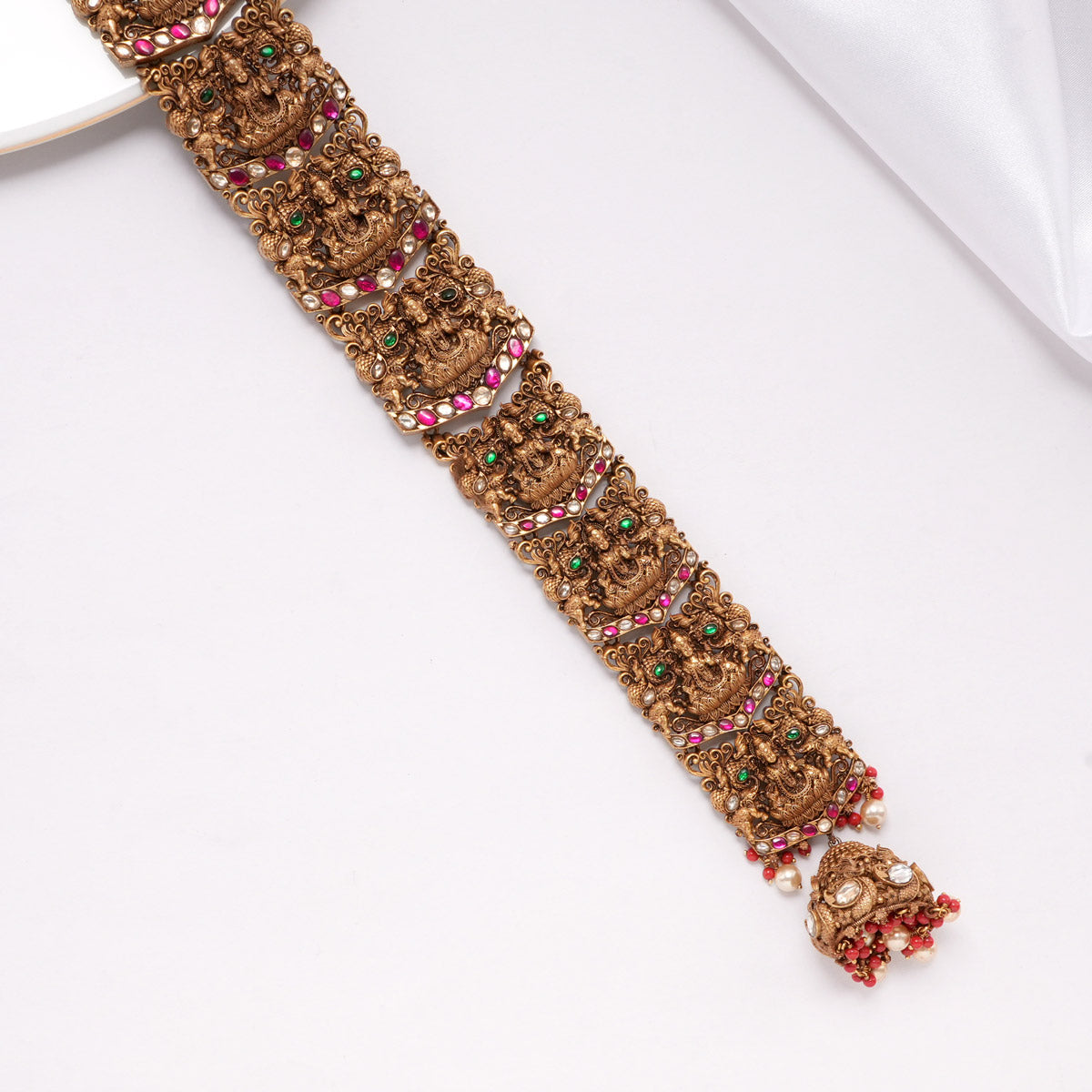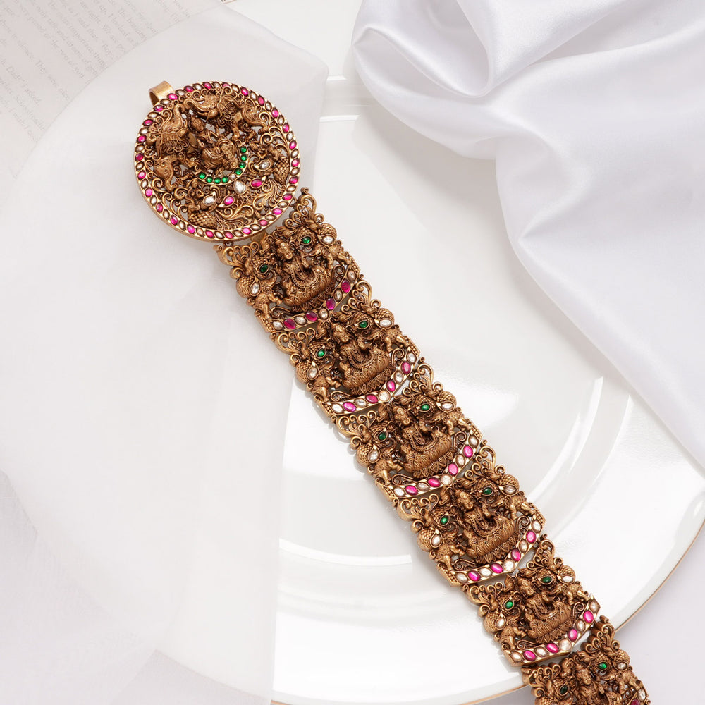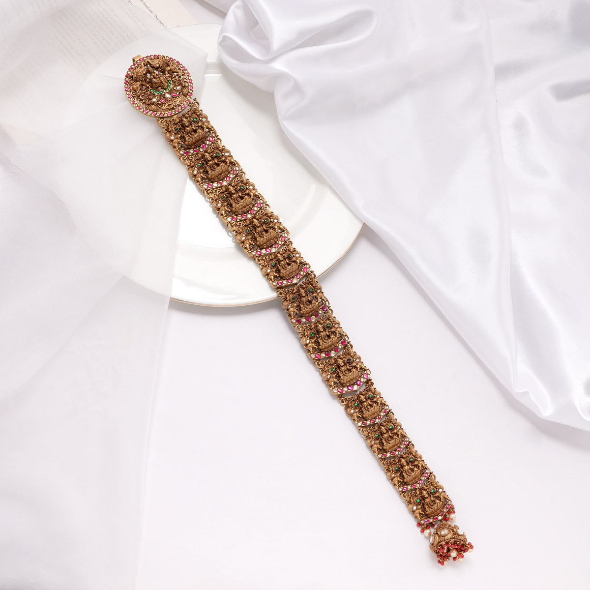 This Diya Nagas Jada is crafted with 92.5 Silver and 24Kt Gold-plating and is adorned with Semi Precious Stones.