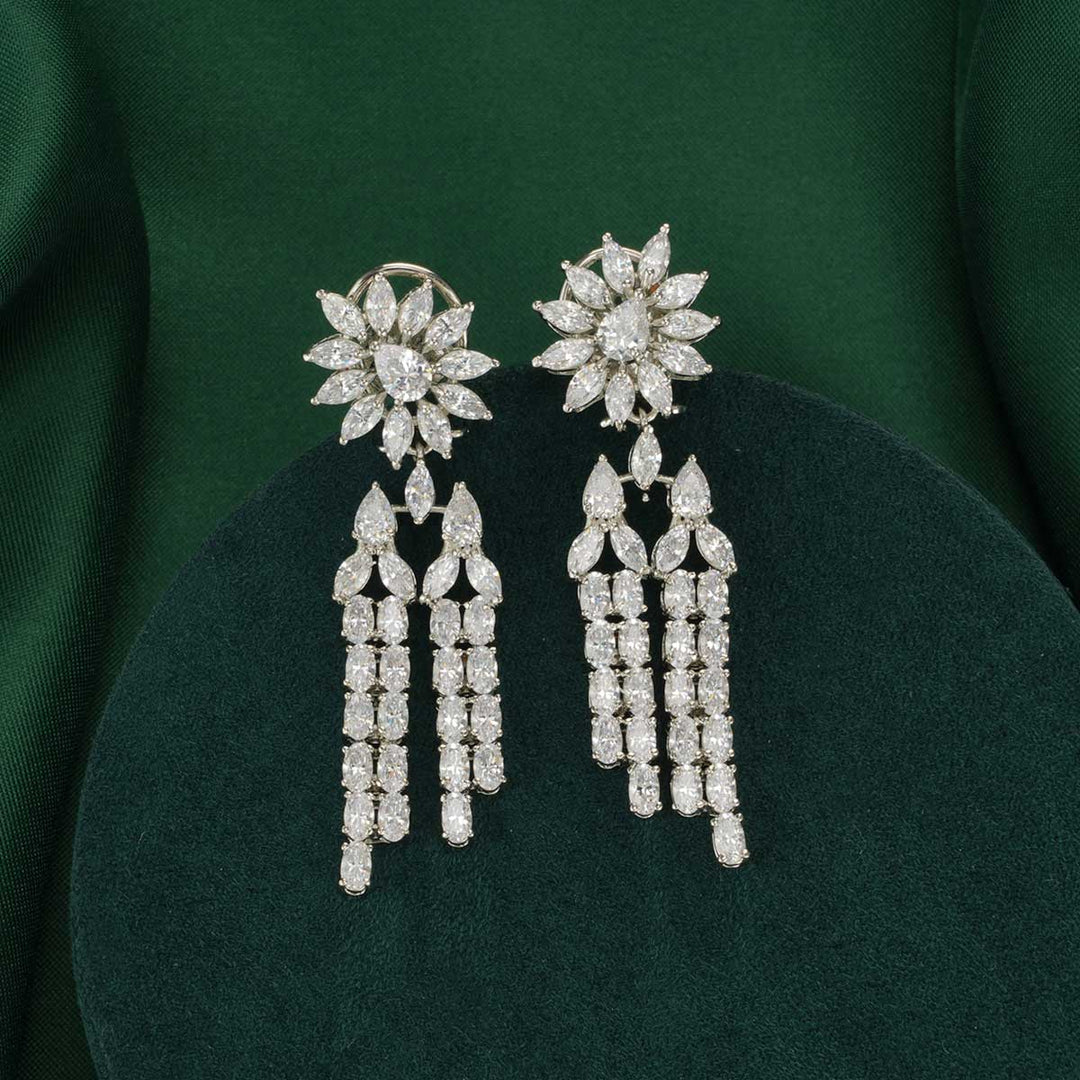 Crafted from 92.5% silver, these earrings are adorned with cubic zirconia stones.