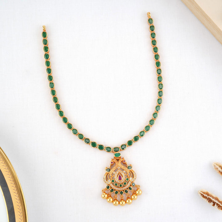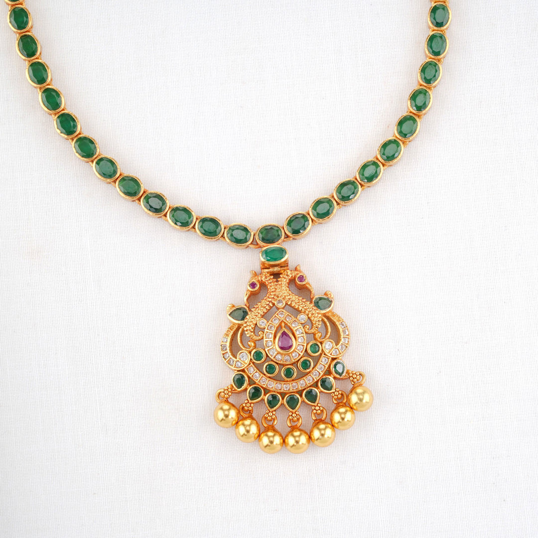 This necklace is made from 92.5 Sterling Silver and boasts 24-karat gold plating and semiprecious stones.