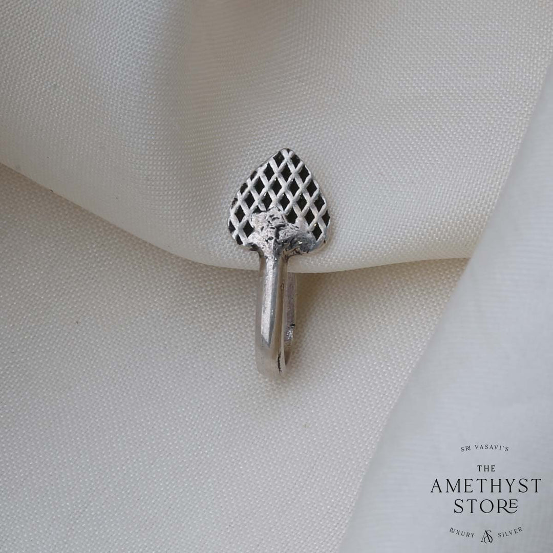 Crafted from 92.5% sterling silver and adorned with semi-precious stones, this oxidized non-pierced nose pin adds a touch of elegance.