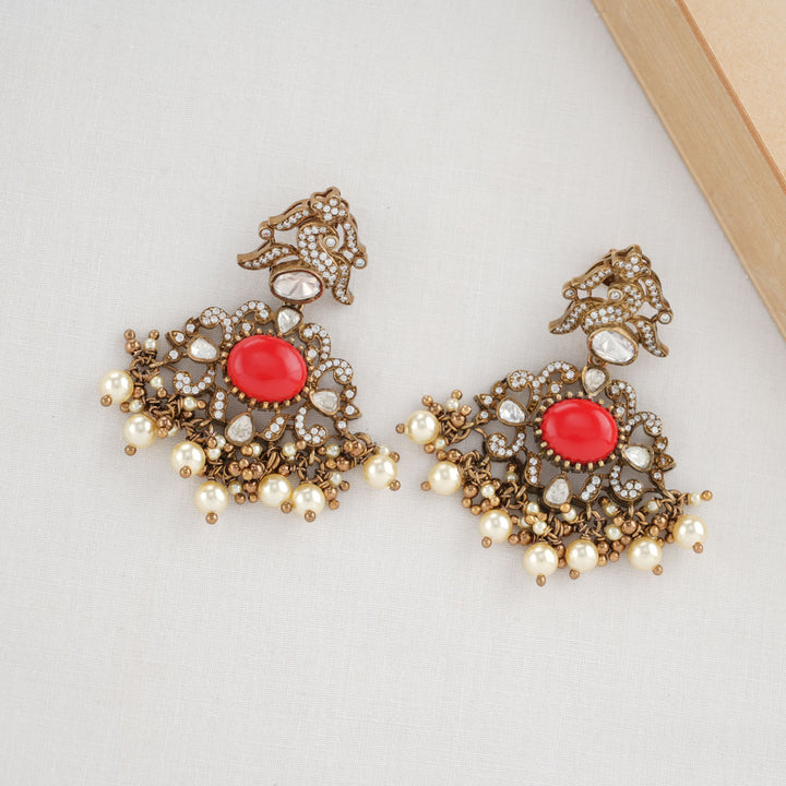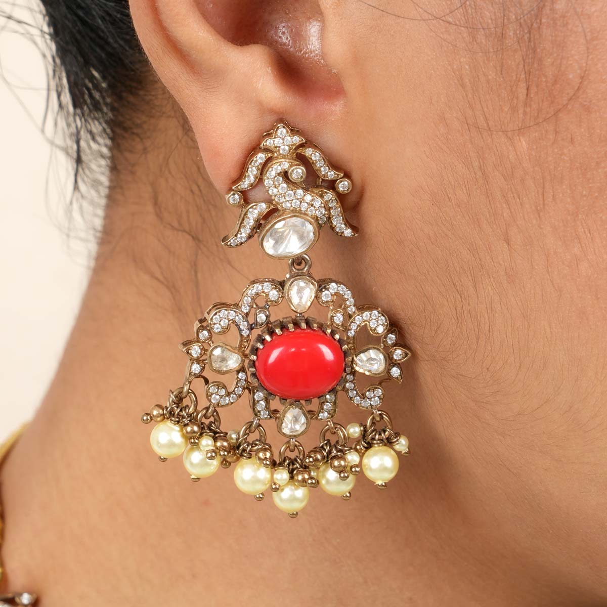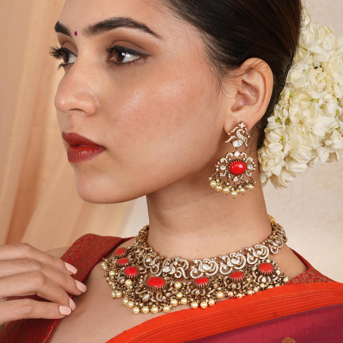 92.5 Silver, Victorian Necklace set studded with Gem Stones and Pearl Beads.