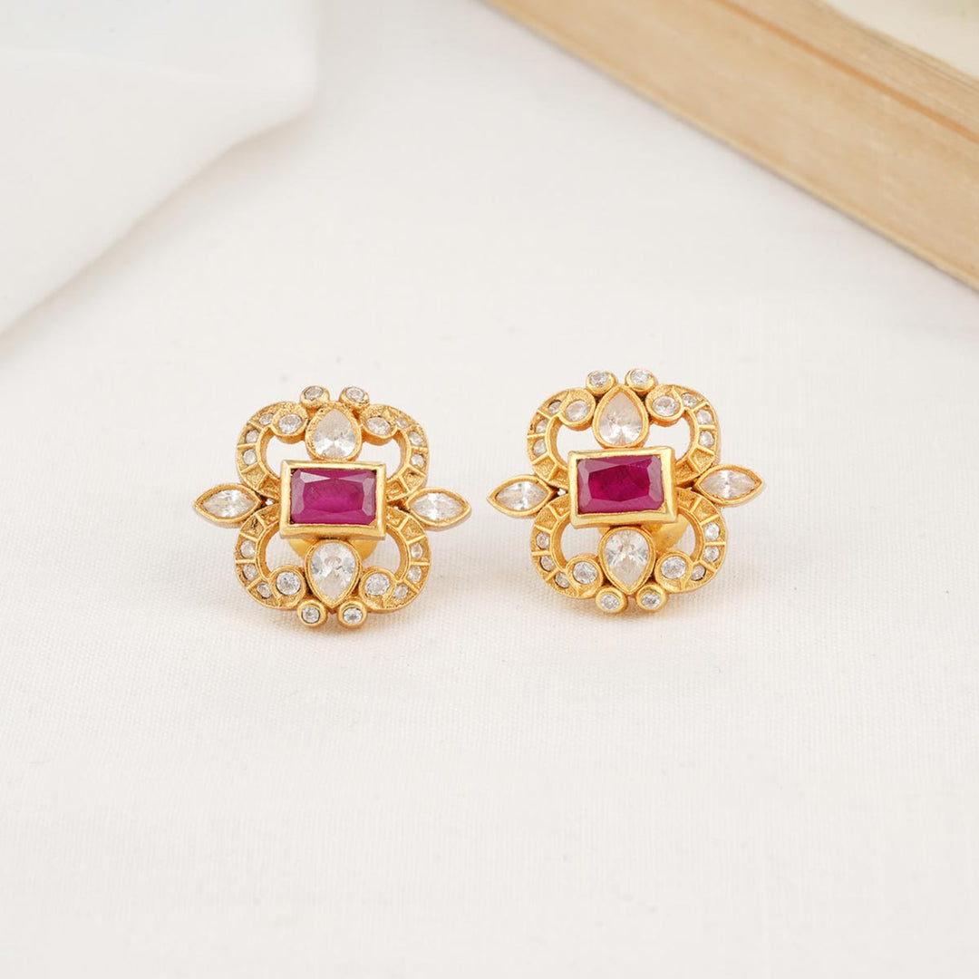 Fabricated from 92.5% sterling silver and 24-karat gold plating, these earrings are adorned with semi-precious stones.