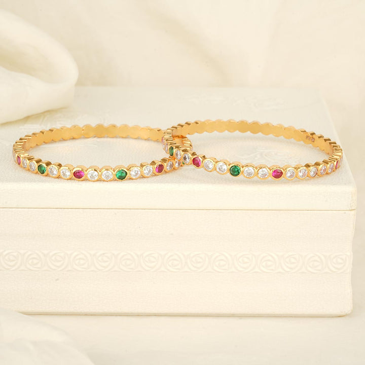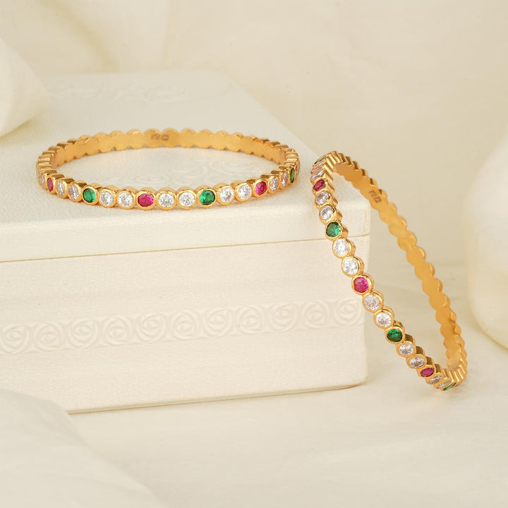 This 92.5 Silver, 24 kt gold-plated stylish Bangles is studded with semi-precious stones to make a stunning statement. Perfect for both formal and casual occasions.
