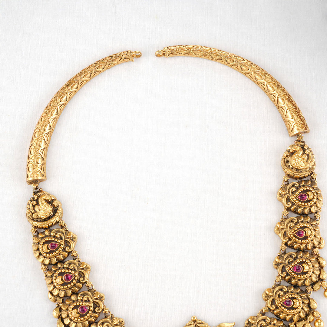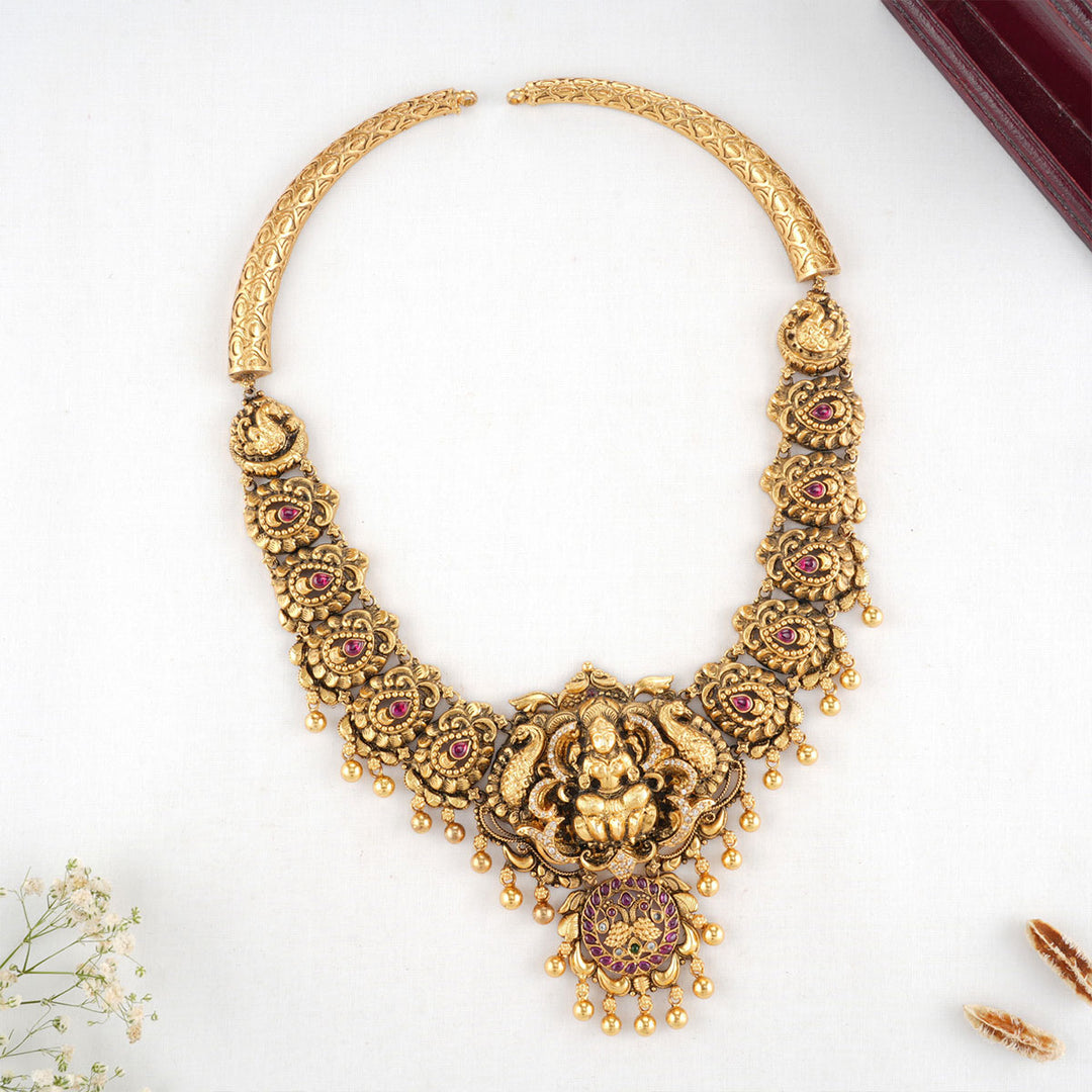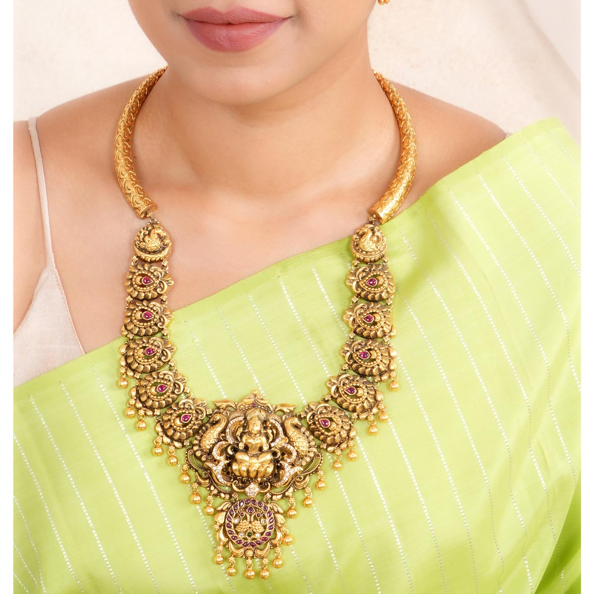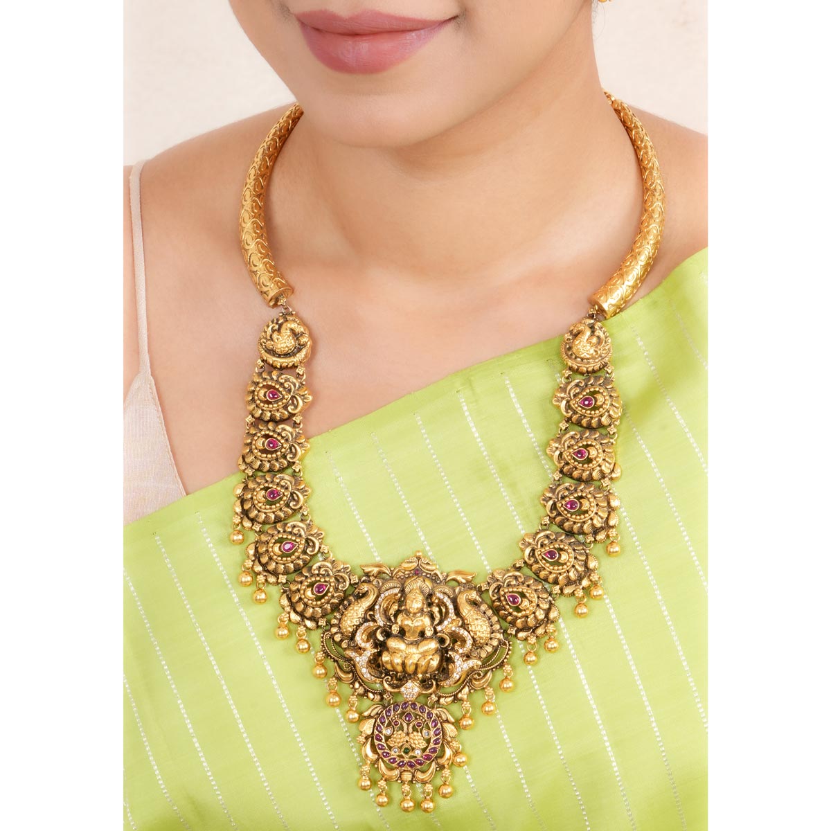 This necklace is made from 92.5 Sterling Silver, accented with semiprecious stones and adorned with a 24-karat gold plating, all on Nagas Jewellery.