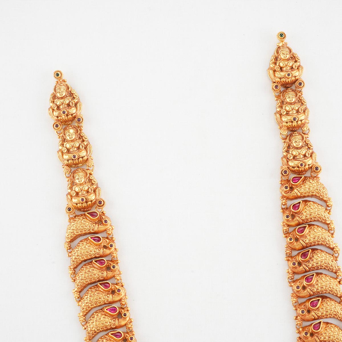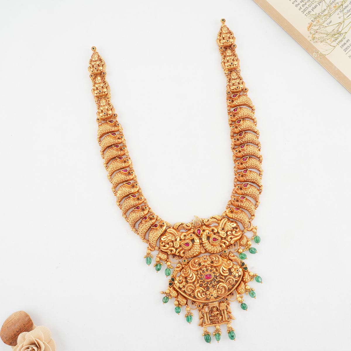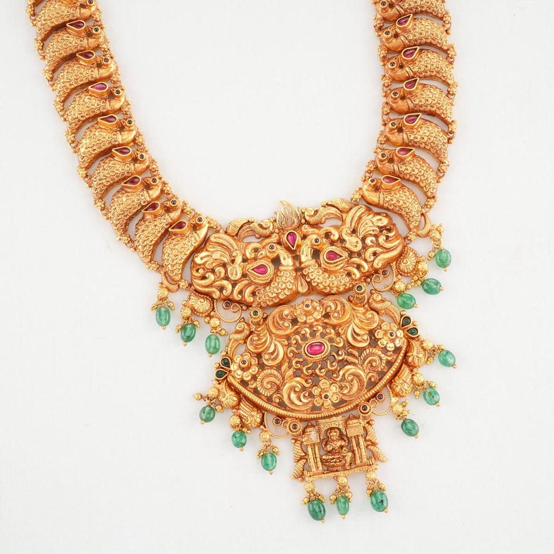 This necklace is made from 92.5 Sterling Silver, accented with semiprecious stones and adorned with a 24-karat gold plating, all on Nagas Jewellery.