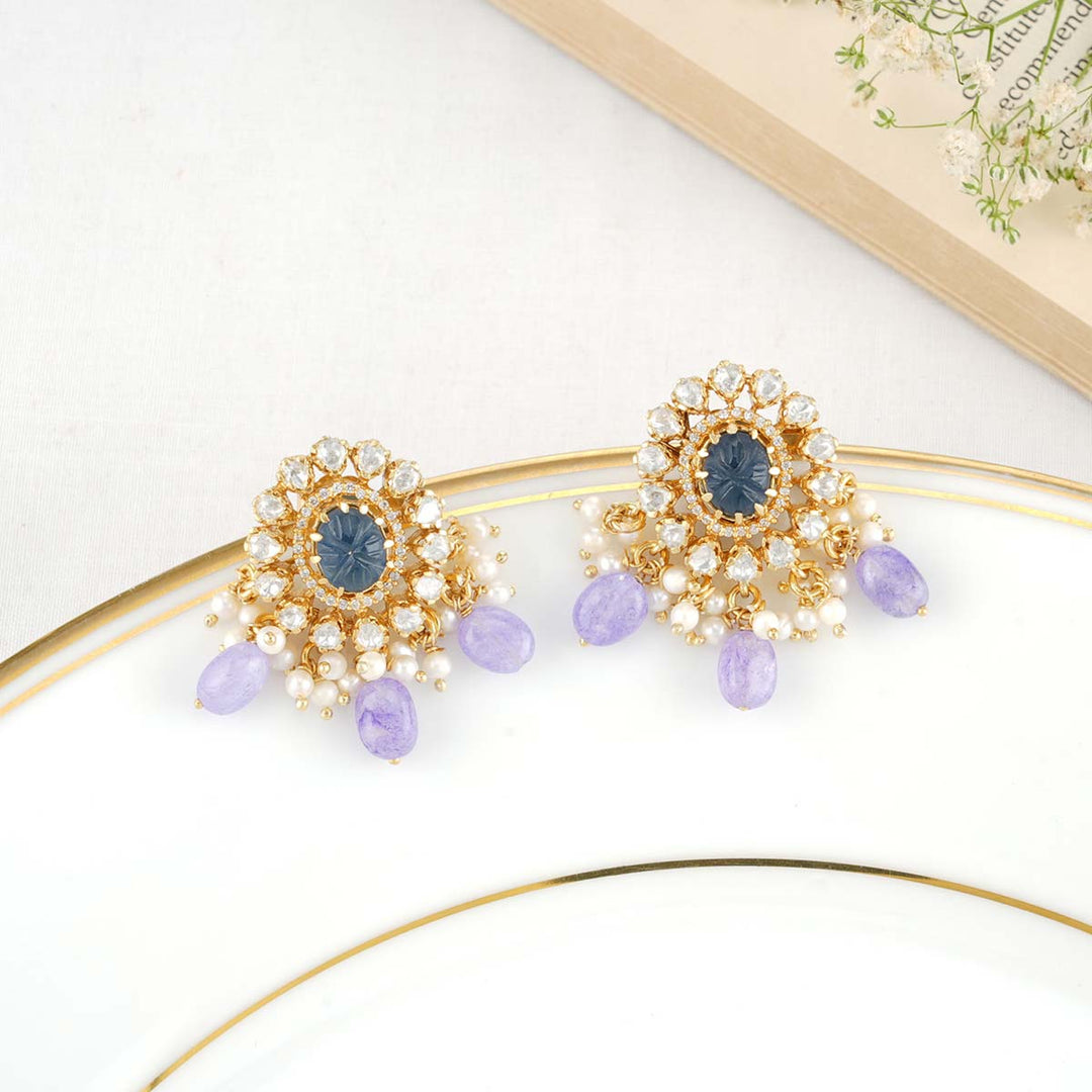 Fabricated from 92.5% sterling silver and 24-karat gold plating, these earrings are adorned with semi-precious stones.