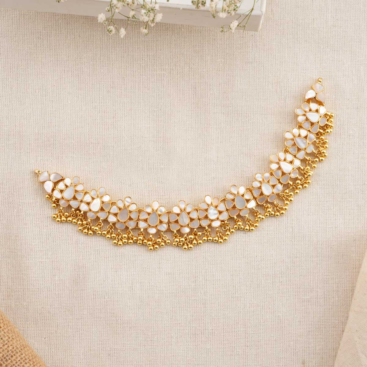 92.5 Silver, Gold Plated Choker set studded with Kundan.