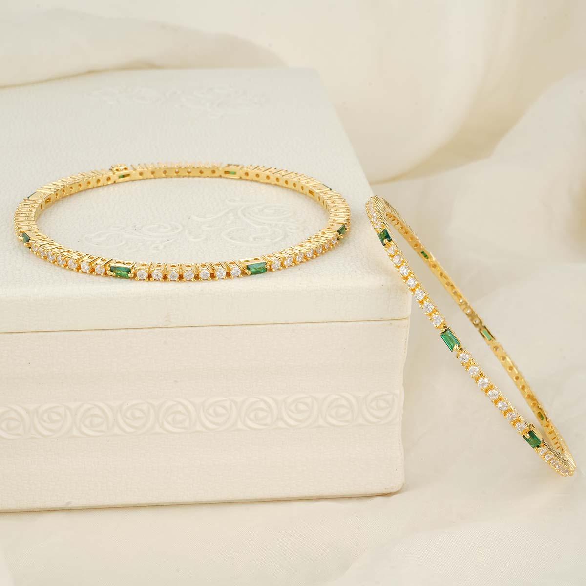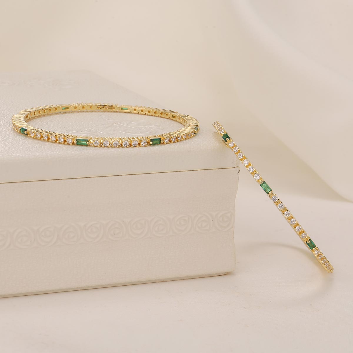 This 92.5 Silver, 24 kt gold-plated stylish Bangles is studded with semi-precious stones to make a stunning statement. Perfect for both formal and casual occasions.