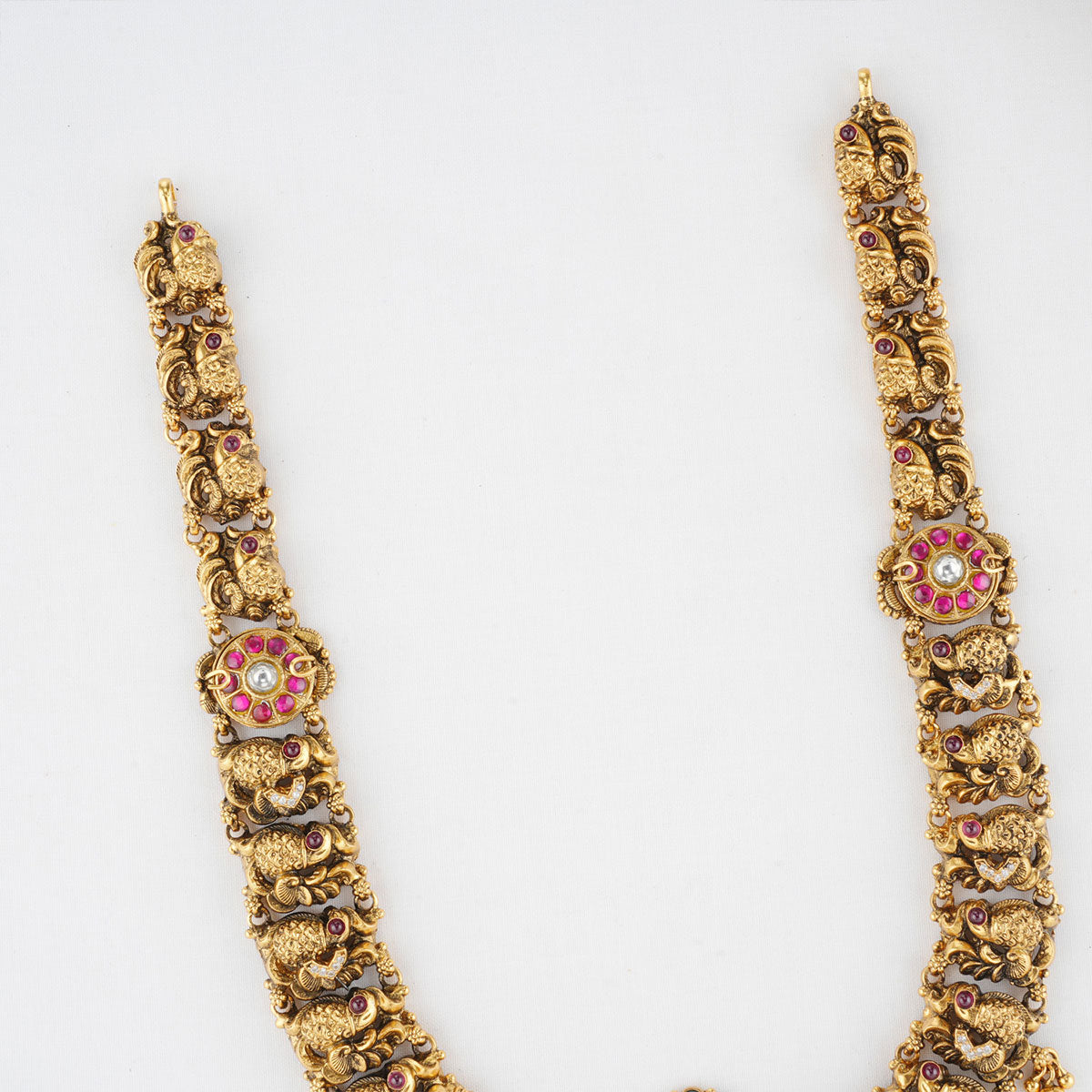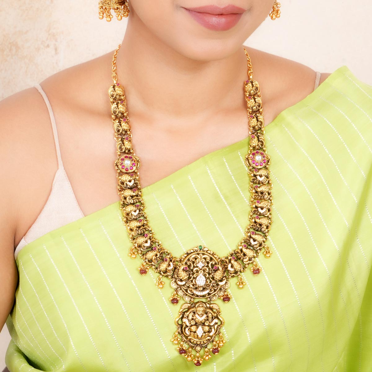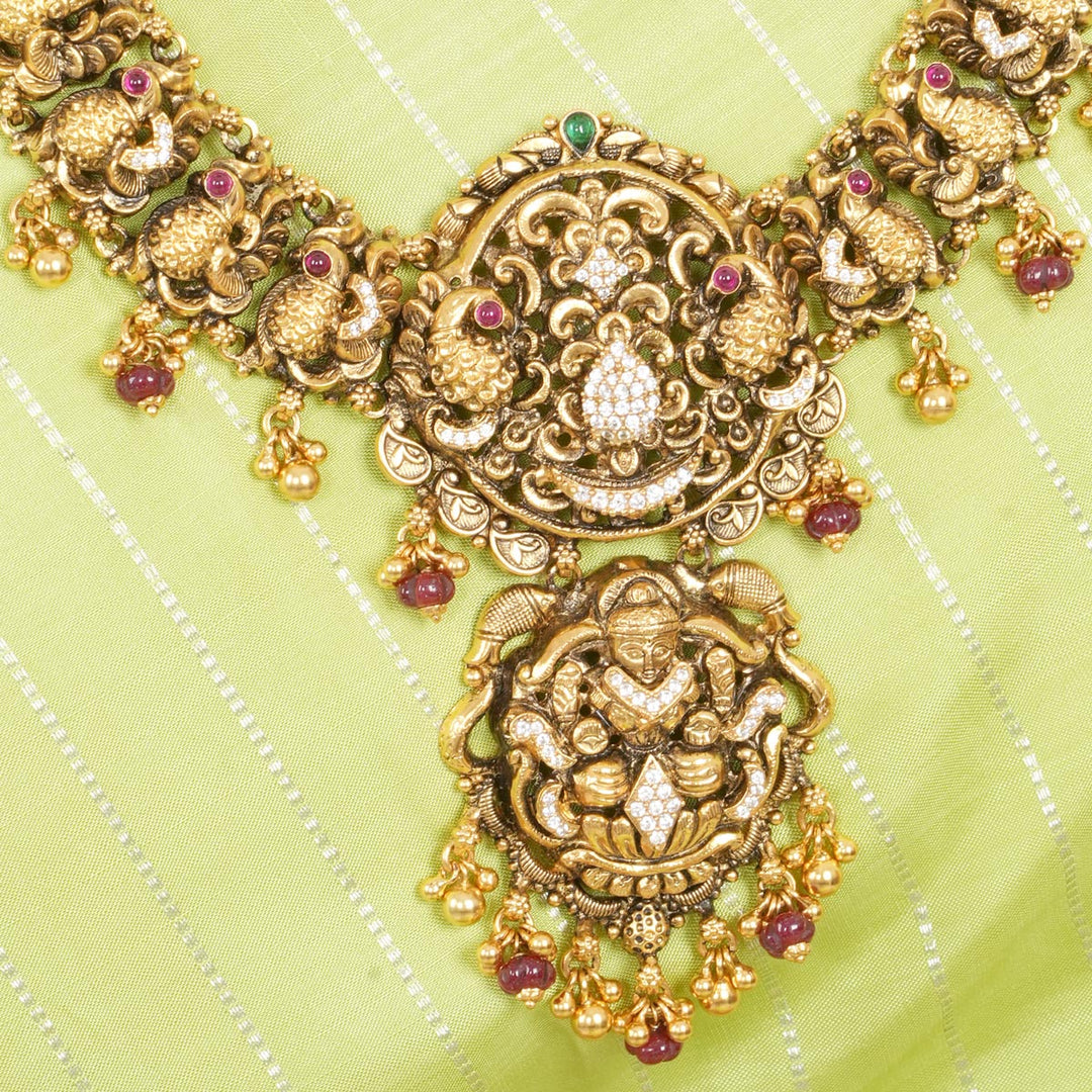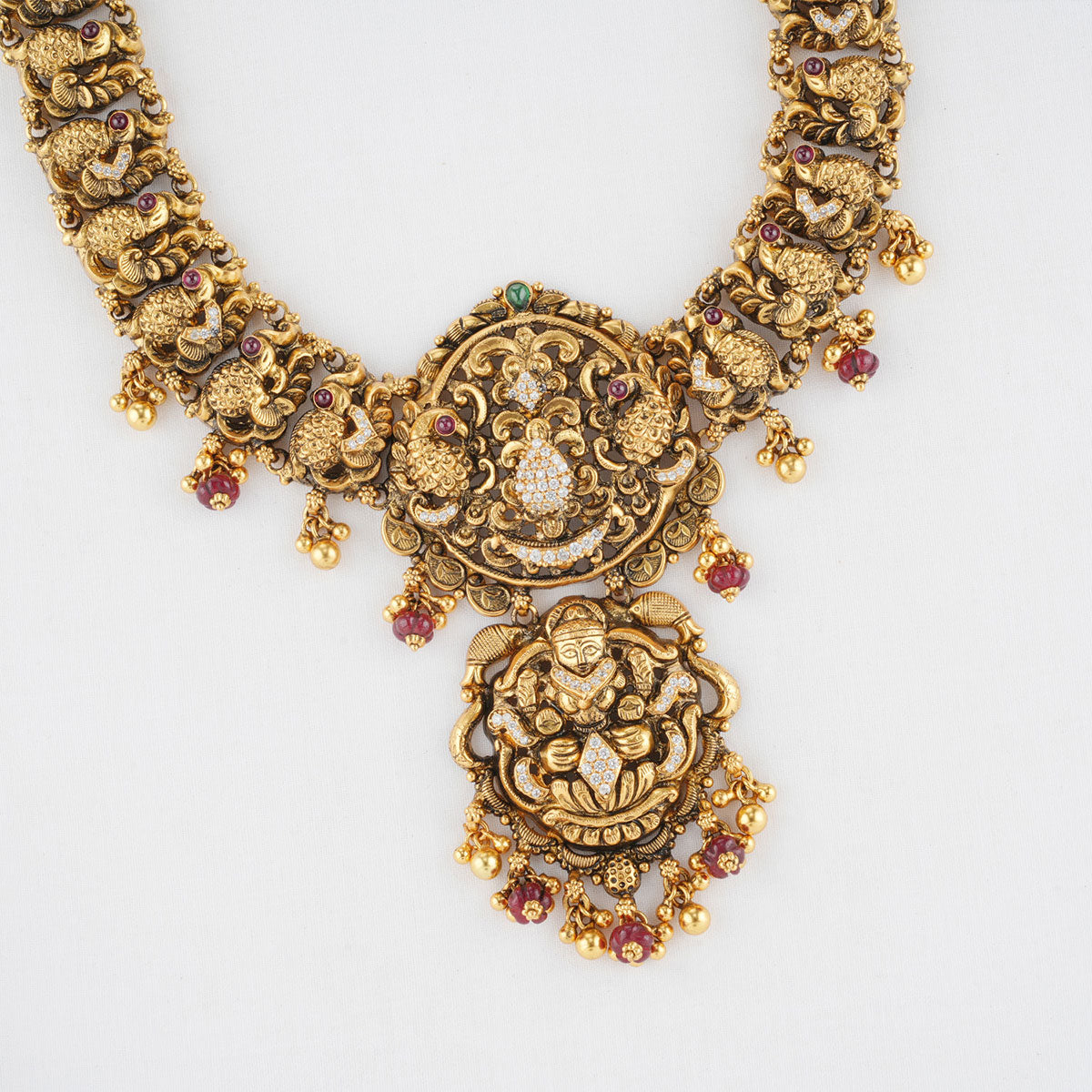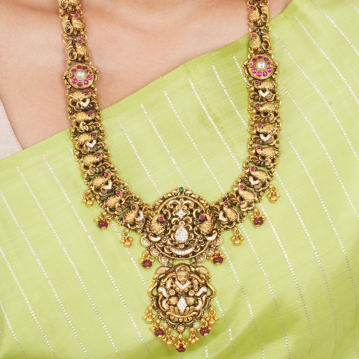 This necklace is made from 92.5 Sterling Silver, accented with semiprecious stones and adorned with a 24-karat gold plating, all on Nagas Jewellery.