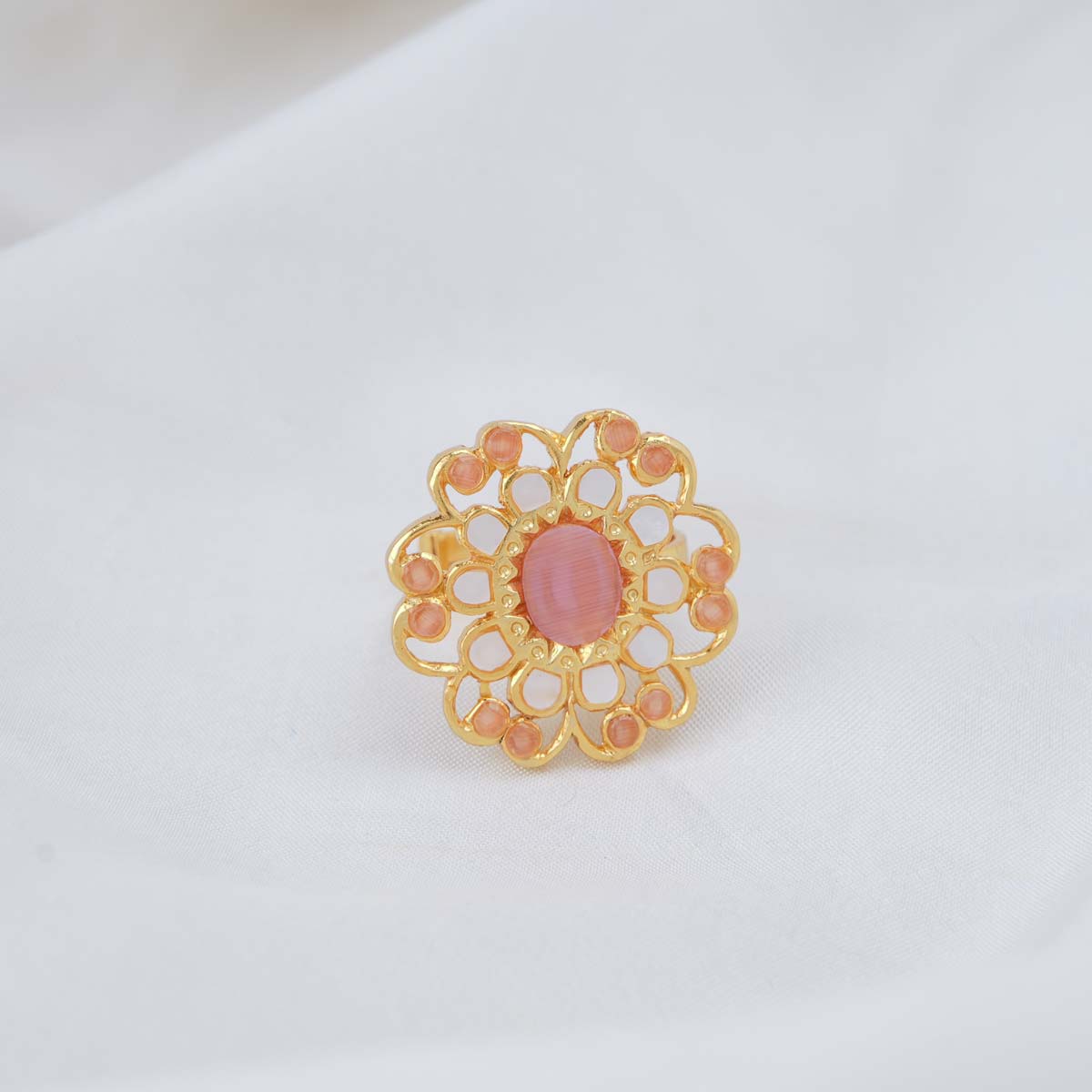 Rings that feature 92.5% silver and 24kt gold plating, with semi-precious stones set into them.