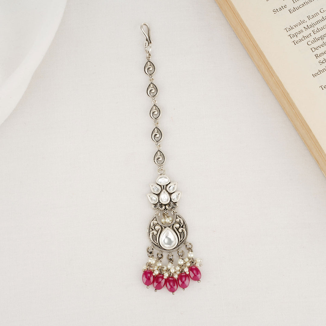 This 92.5 Silver Oxidised Maangtikka is crafted with precision and attention to detail. It is an ideal choice for the perfect sophisticated look.