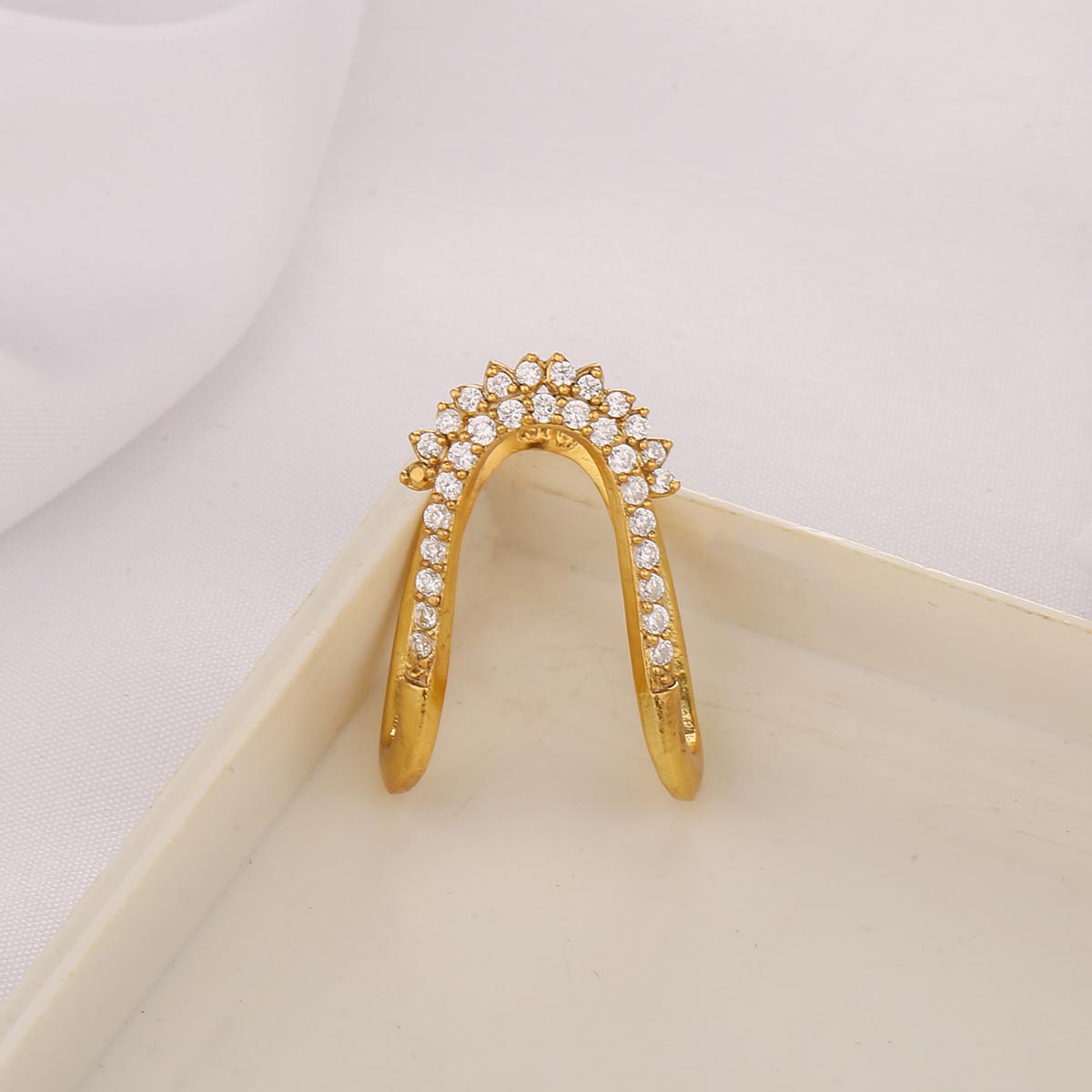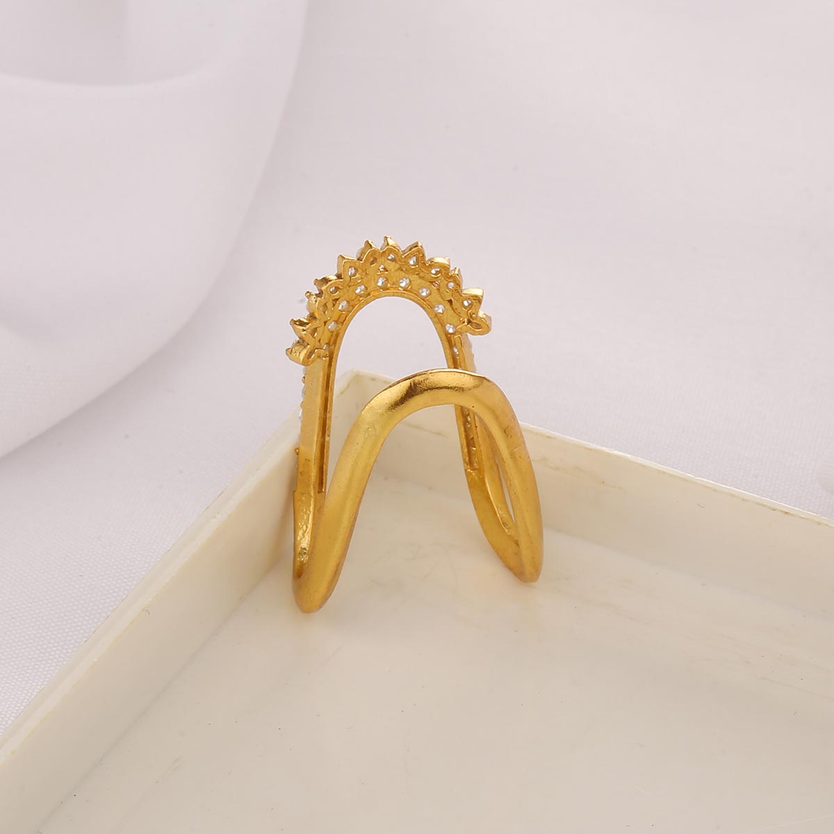 This adjustable ring is crafted with 92.5 sterling silver and plated with 24kt gold. It is adorned with Semi precious stones for a chic finish.