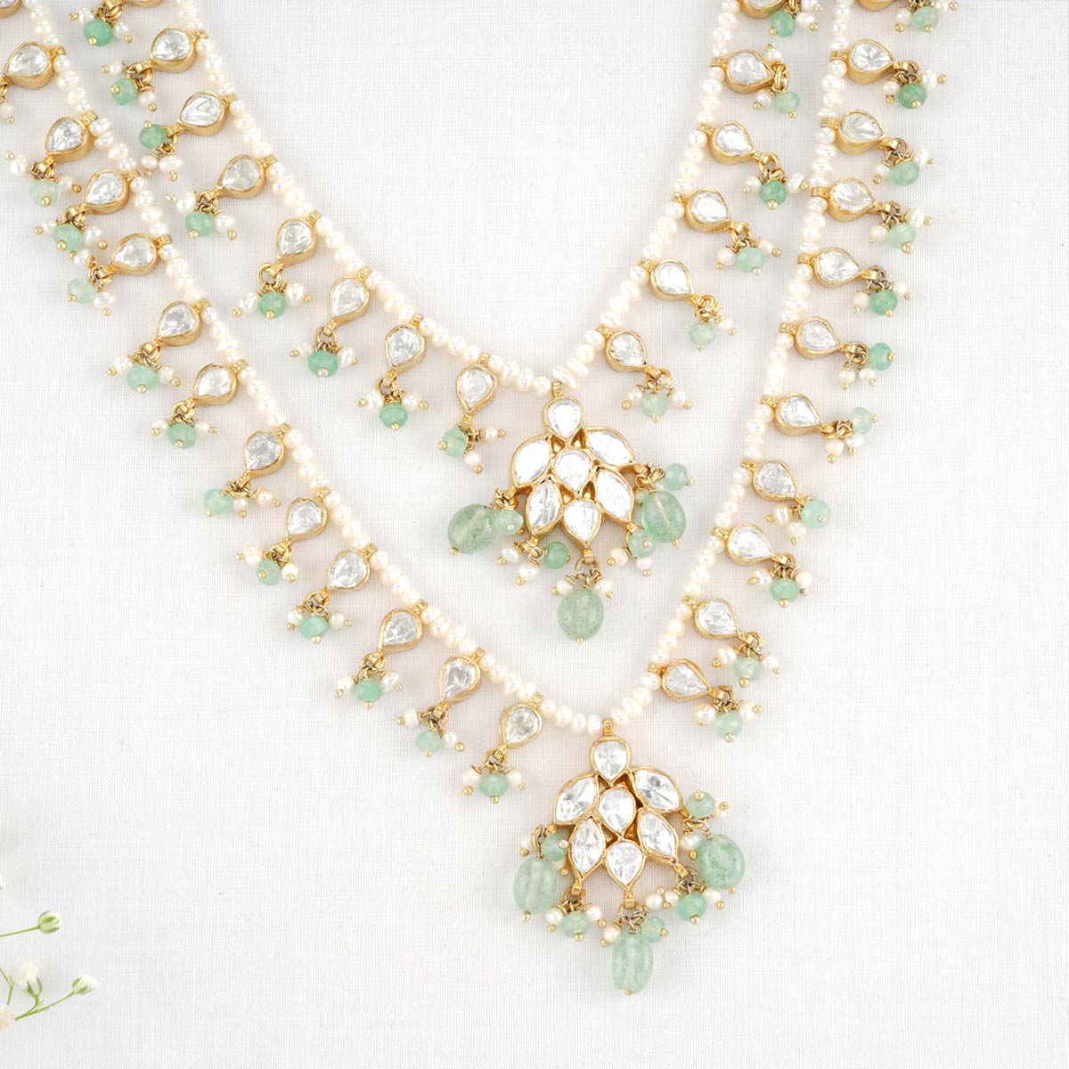 Constructed from 92.5 Silver, this 24kt Gold Plated Necklace set is decorated with stunning Mother of Pearls for a luxe finish.