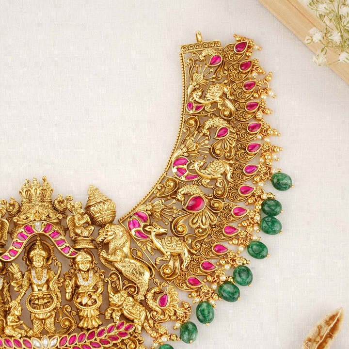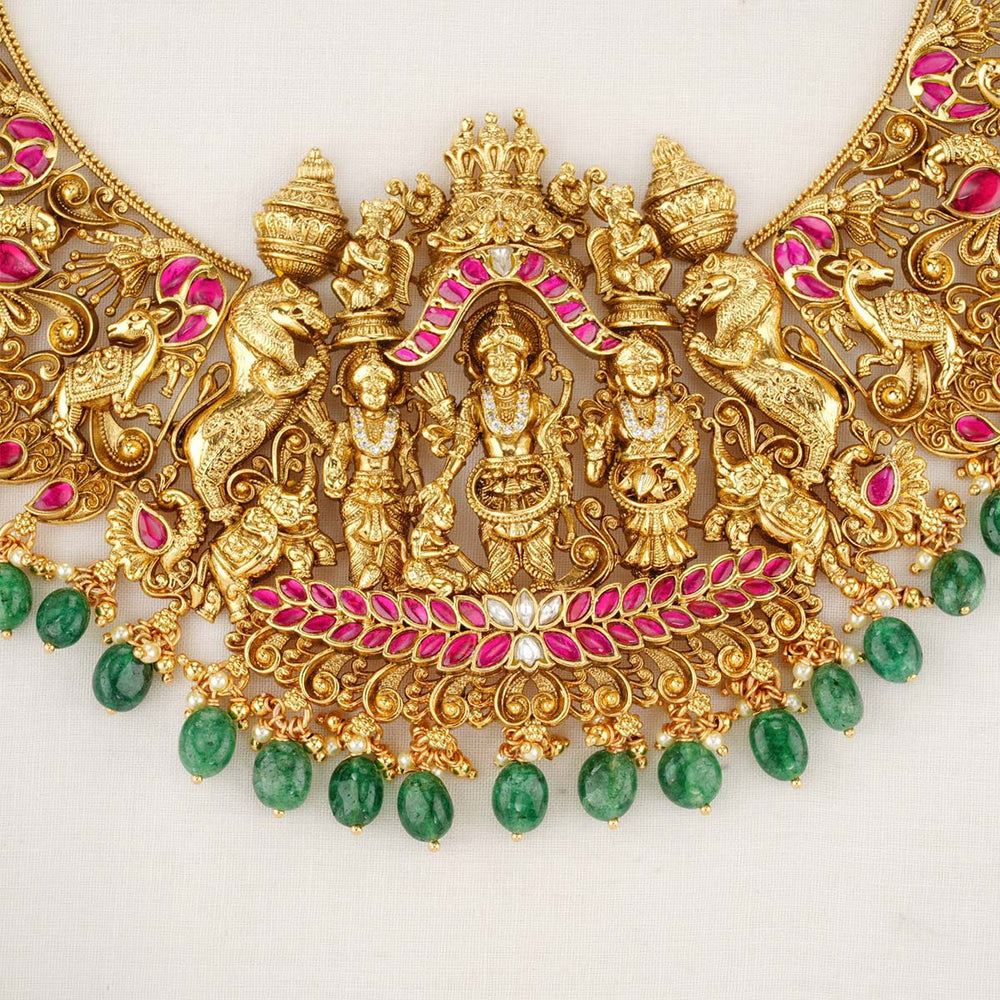 This breathtaking set of Majestic Look Nagas necklaces is crafted from 92.5 Silver, 24kt Gold Plated, and is studded with semi-precious stones for a truly dazzling effect. Unparalleled in design and style, this exquisite set will make a grand statement.