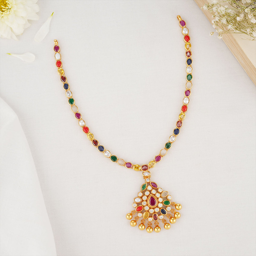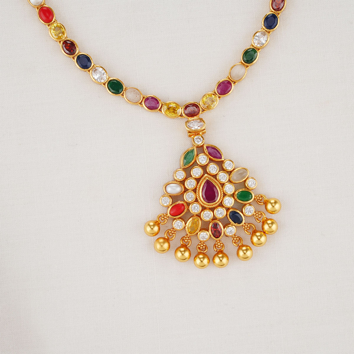 This elegant Short Necklace features 92.5% pure silver and 24 karat gold plating, adorned with high-quality semi-precious stones. It is the ideal accessory for any formal event.