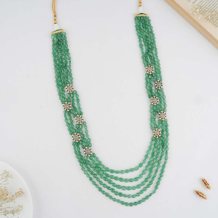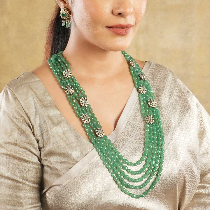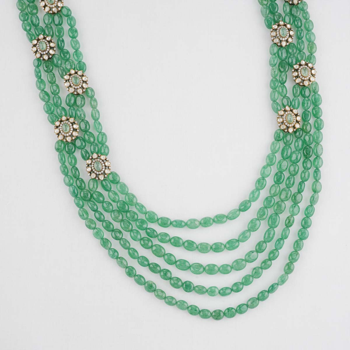 92.5 Silver, Victorian Necklace studded with Gem Stones and Pearl Beads.