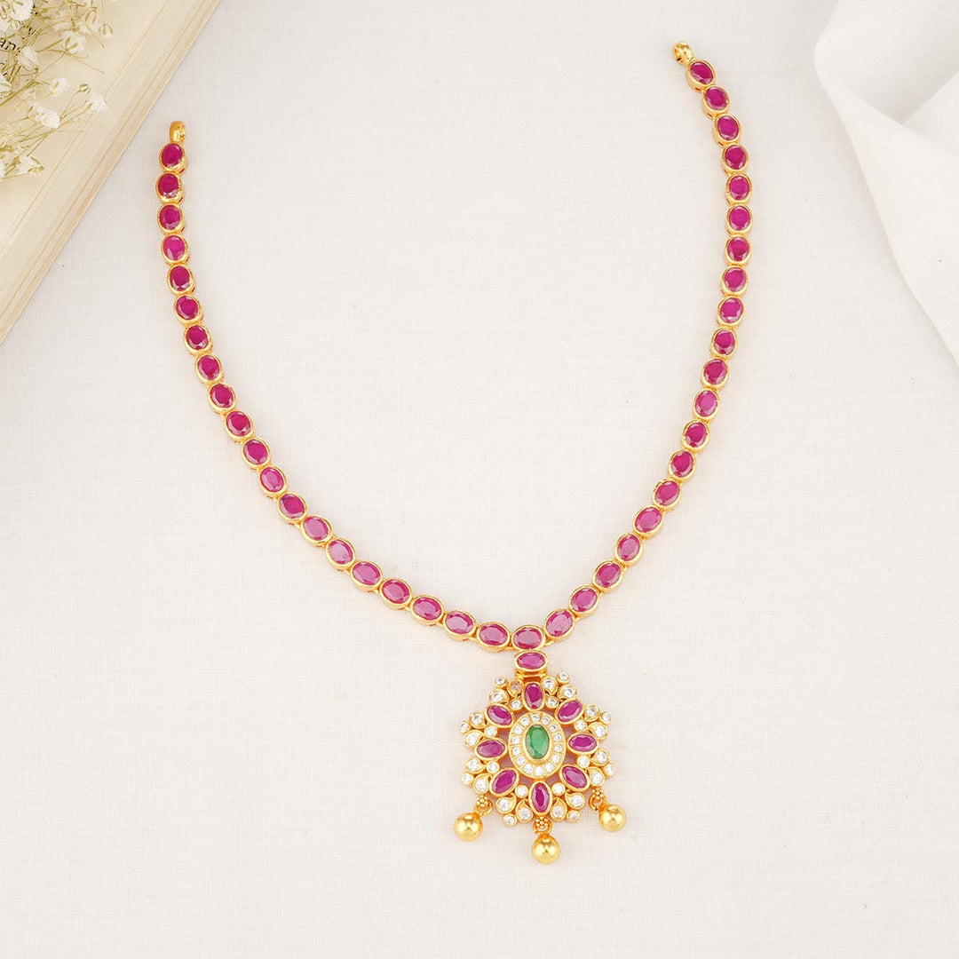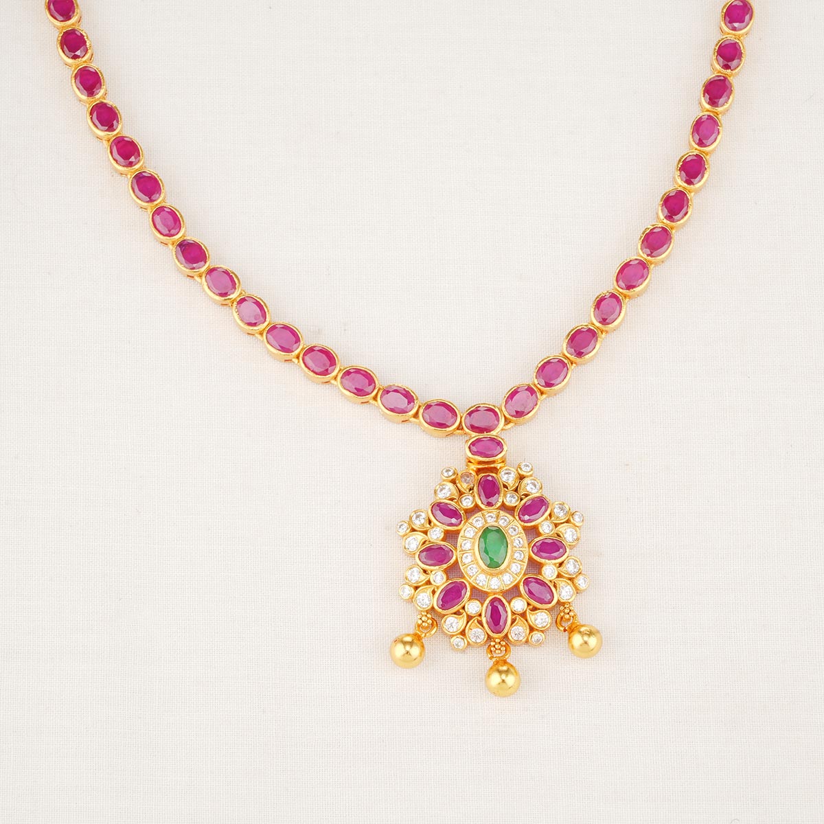 This set of Majestic Look necklaces is crafted from 92.5 Silver, 24kt Gold Plated, and is studded with semi-precious stones for a truly dazzling effect. Unparalleled in design and style, this exquisite set makes a grand statement.
