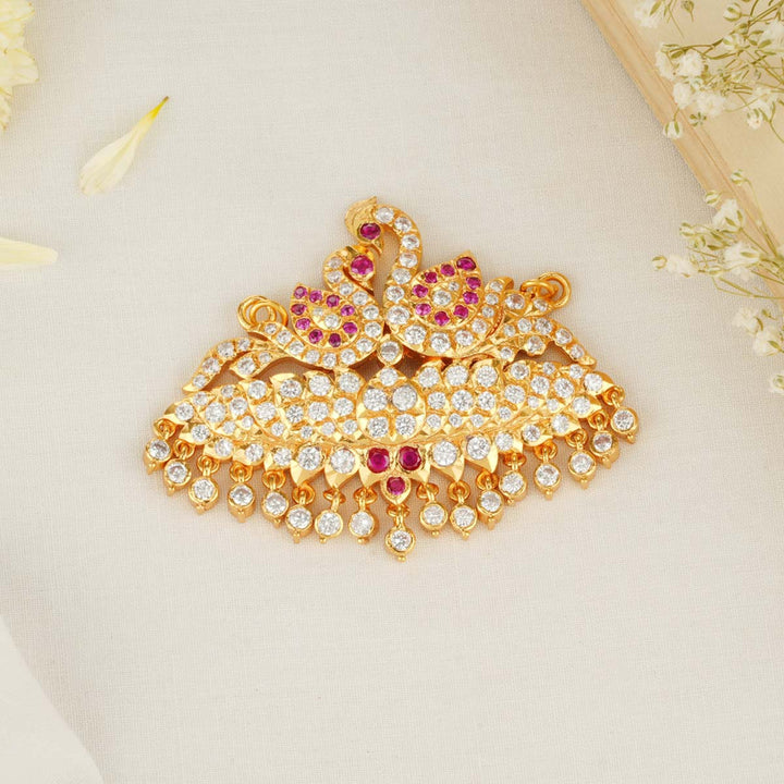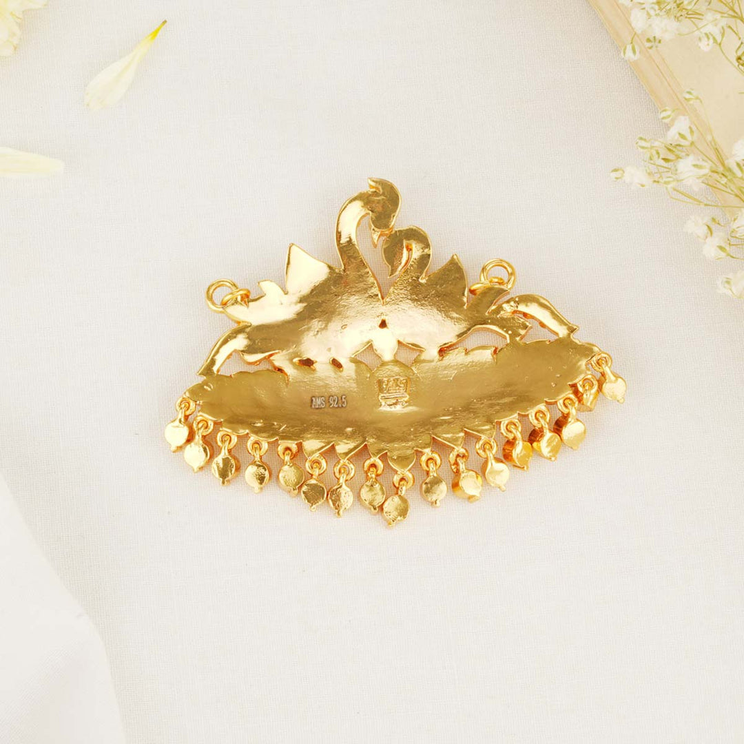 This 92.5 Silver, 24 kt gold-plated stylish Pendant is studded with semi-precious stones to make a stunning statement. Perfect for any special occasion.